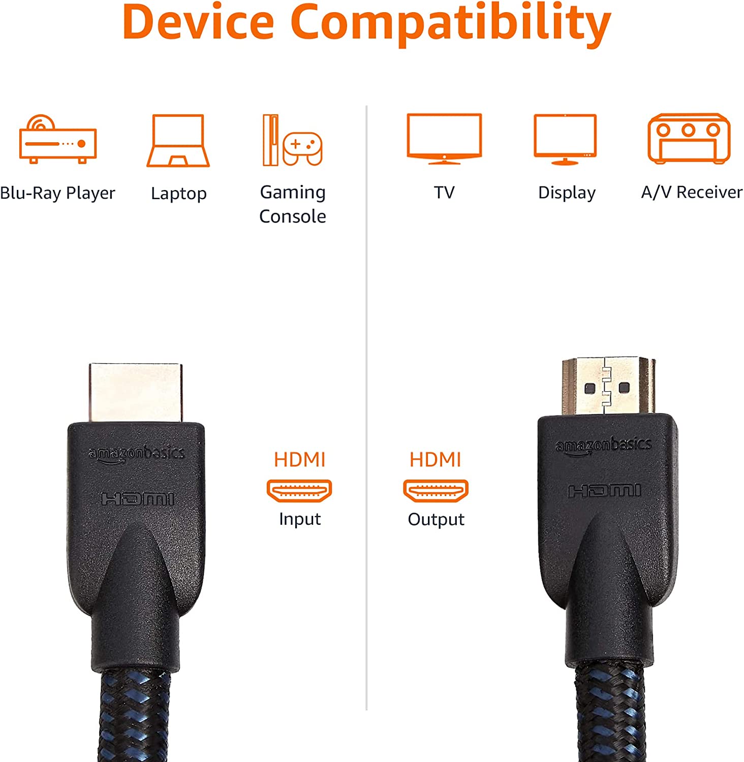 Amazon Basics High-Speed HDMI Cable (18Gbps, 4K/60Hz) - 3 Feet, Nylon-Braided