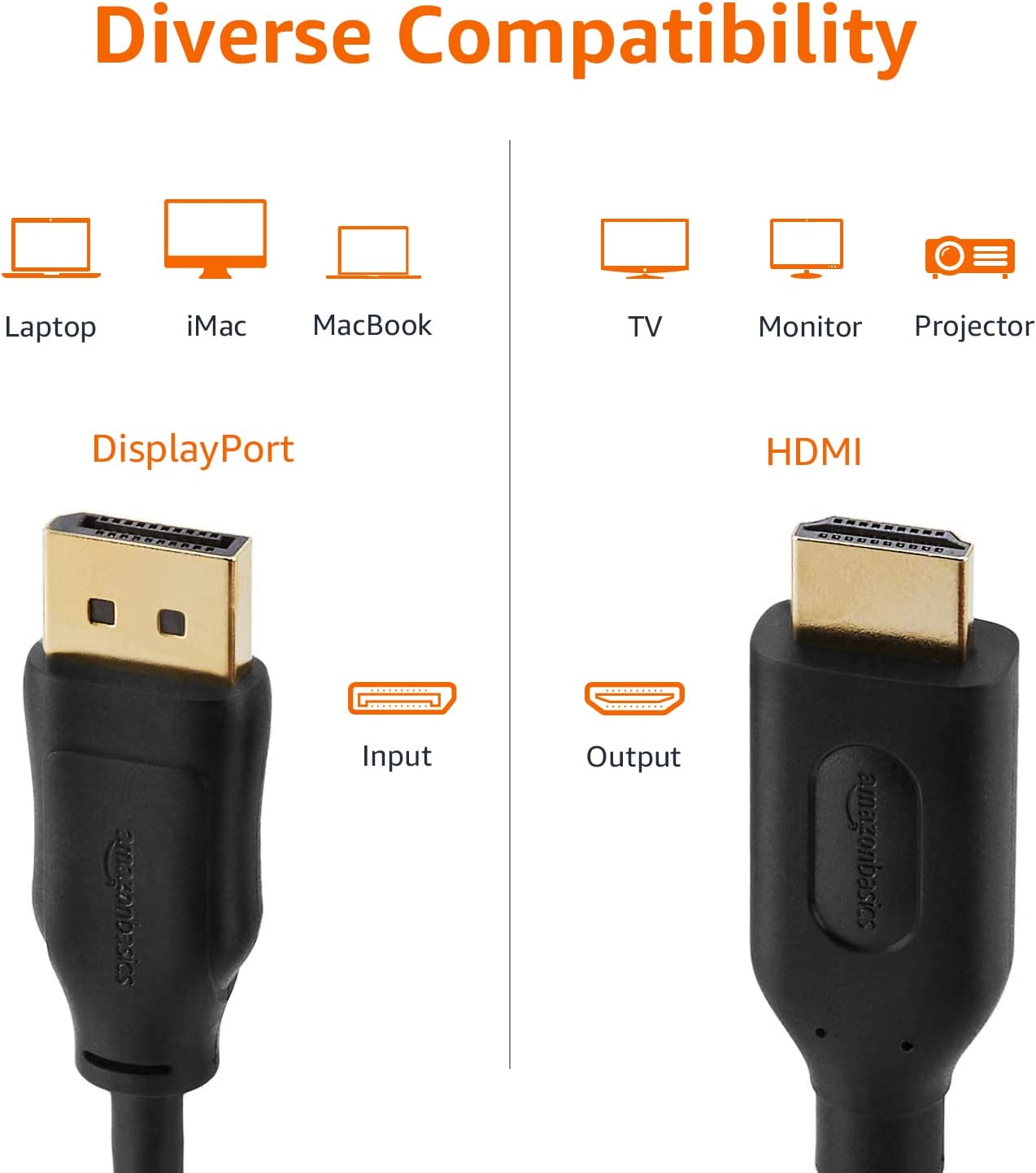 Amazon Basics Uni-Directional DisplayPort to HDMI Display Cable 4K@30Hz - 6 Feet