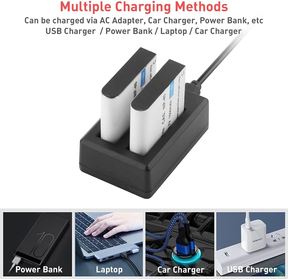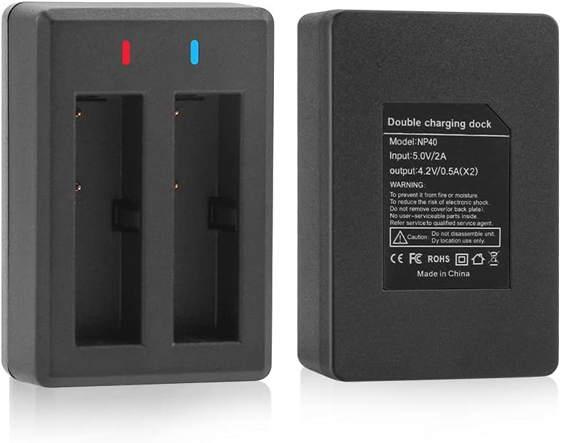 • This NP-40 battery charger design is convenient to charge 2 batteries at the same time, saves charging time efficiently.The battery charger RED light shows that the battery is charging, BLUE light shows that the battery is full charged or no battery in charging.