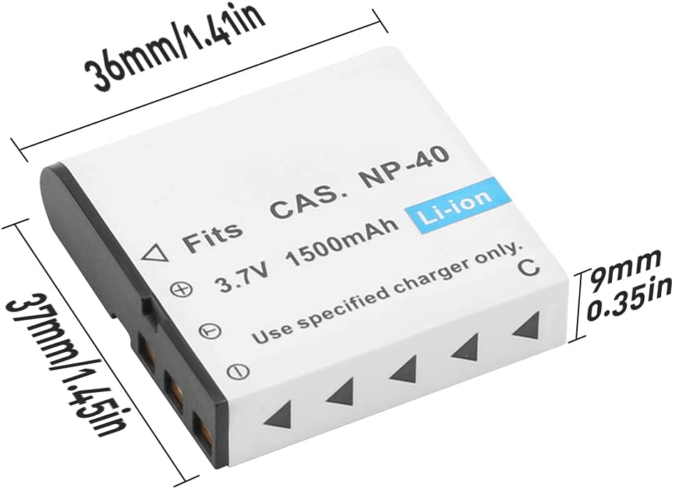 • Camcorders NP-40 battery 3.7V 1500mAh. More batteries, more videos, triple the video camera life with a complete backup battery pack that includes three 1500mAh replacement batteries.