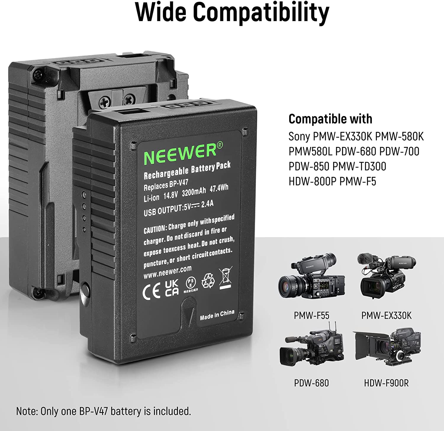 Neewer V Mount/V Lock Battery, 47Wh 14.8V 3200mAh Mini Lightweight Rechargeable Lithium Battery for Broadcast Studio Video Camcorder, Compatible with Sony HDCAM XDCAM Digital Cinema Cameras, BP-V47