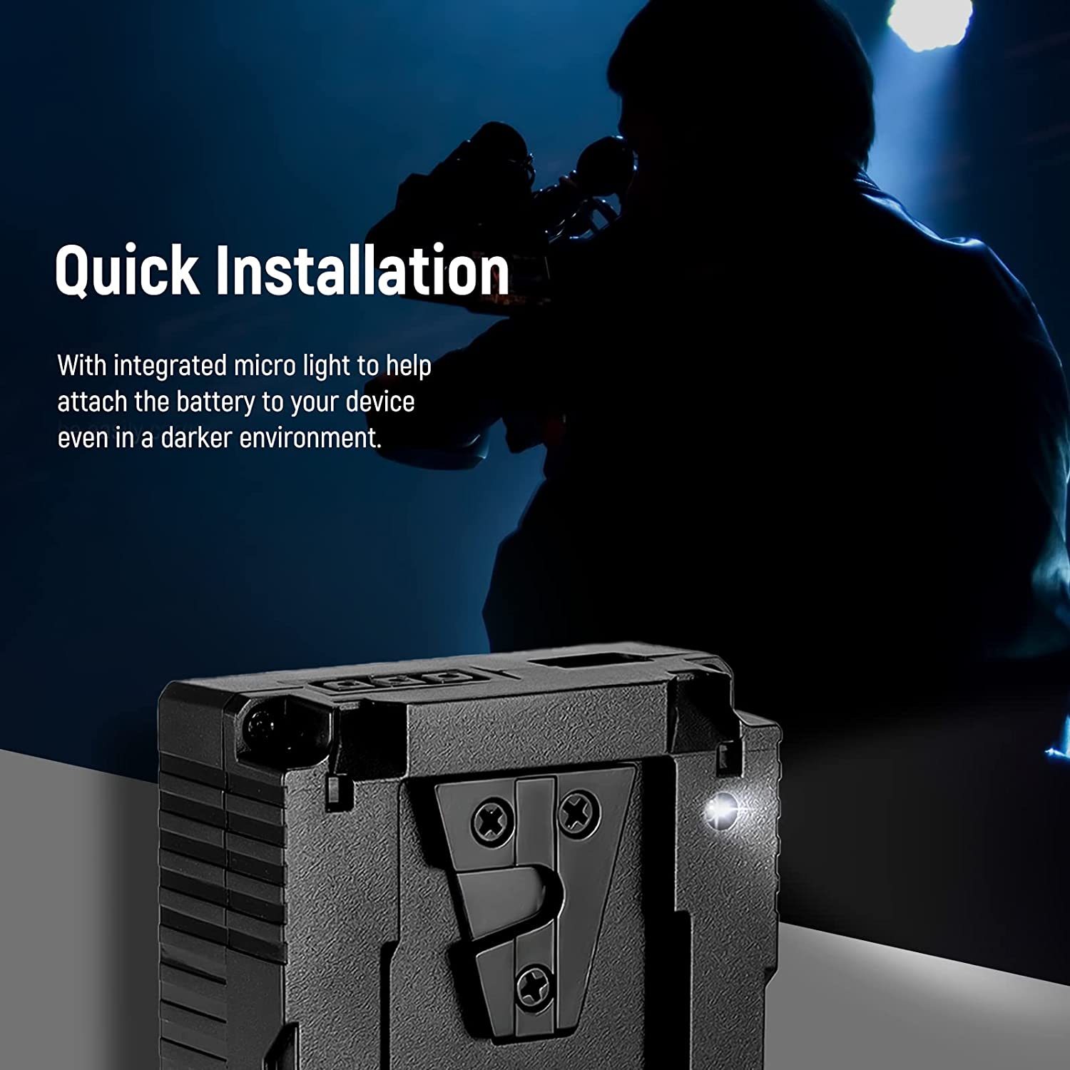 • 【Wide Compatibility】 Built for broadcast camcorders, video cameras, and LED video lights with standard V mount battery plates. The battery is compatible with SONY PMW-EX330K PMW-EX330L PMW-580K PMW580L PDW-680 PDW-700 PDW-850, PMW-TD300 HDW-F900R HDW-680 HDW-800P PMW-F55 PMW-F5 Blackmagic Ursa Mini RED EPIC RED SCARLET ARRI cameras, etc