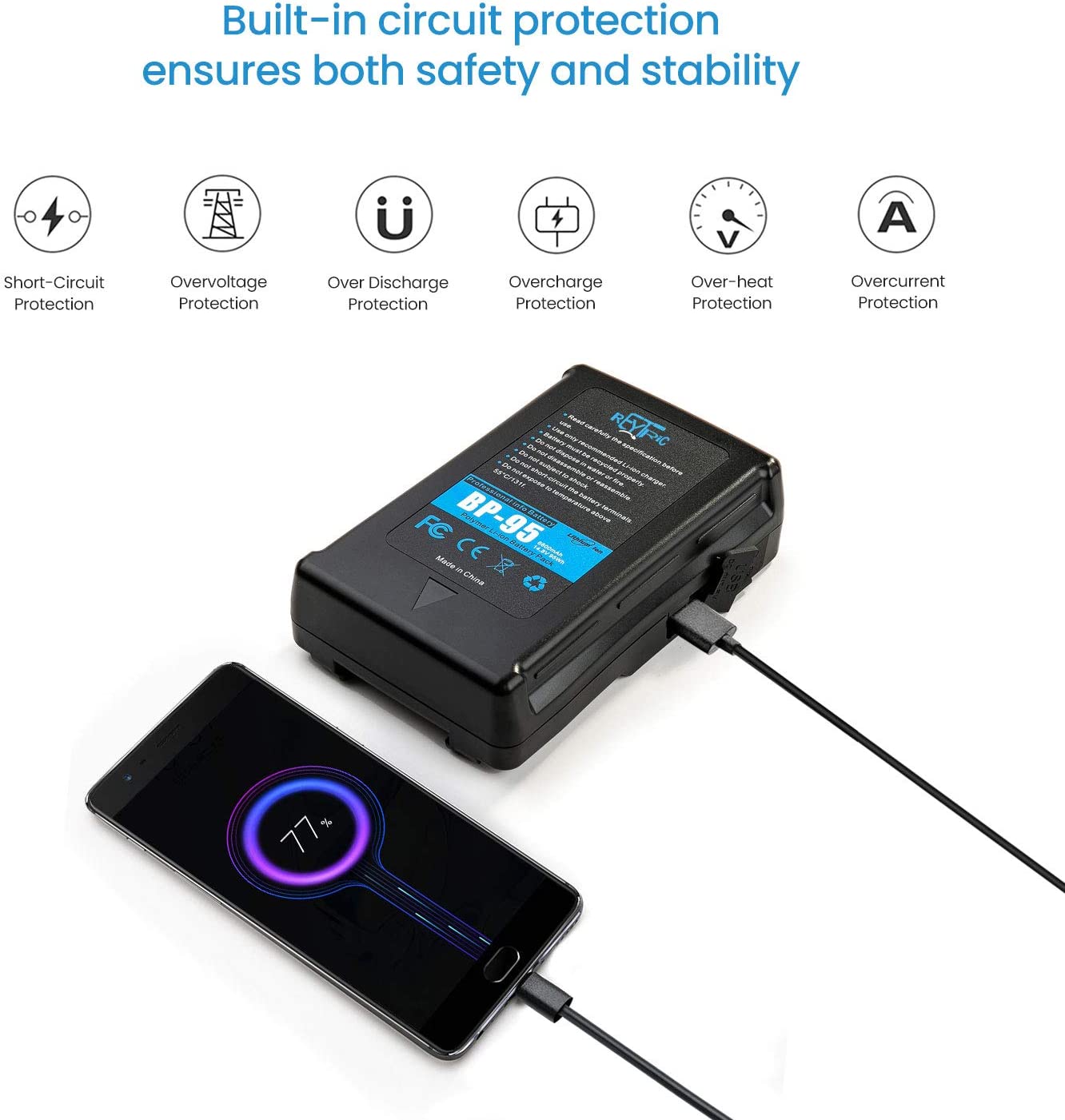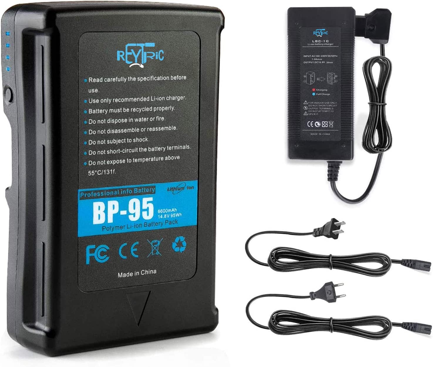 REYTRIC 95Wh(6600mAh) V Mount/V-Lock Battery with D-tap Output Charger and D-Tap Cable Compatible Video Camera Camcorder Broadcast LED Light Replacement Brick for DSLR