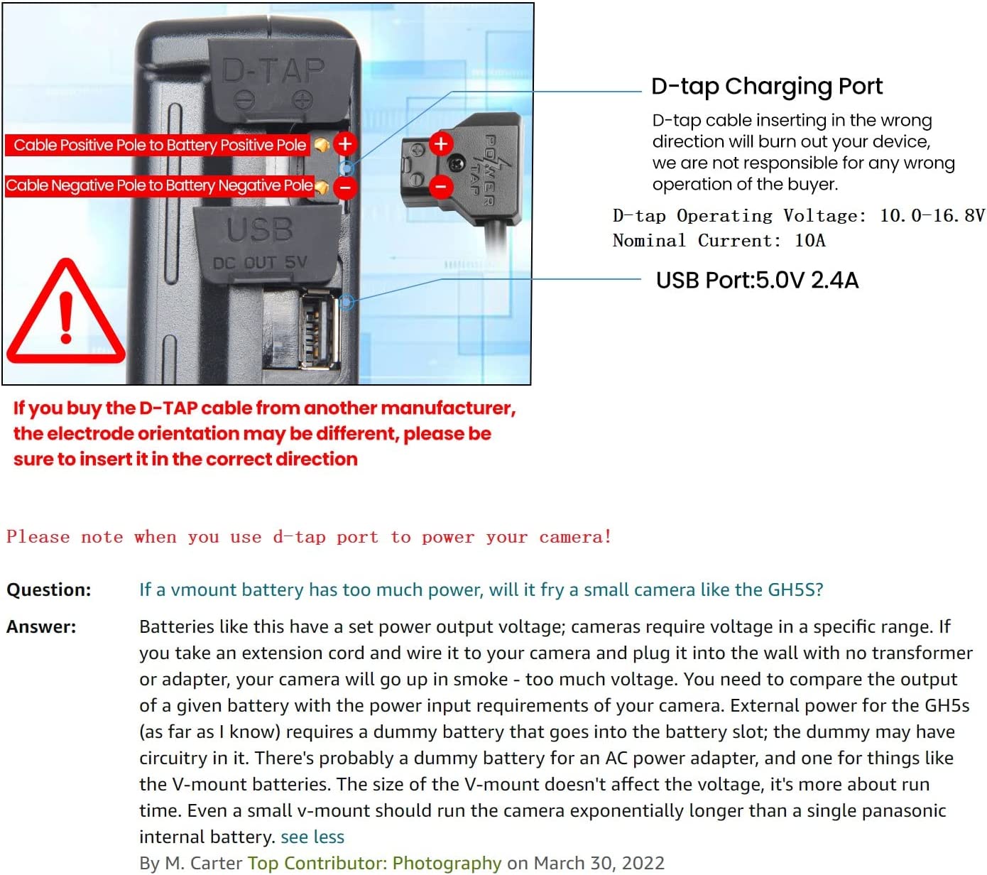 • Compact, lightweight solution for powering cameras and monitor,the battery weight only about 1.37lb.Intelligent charging technology, it only takes 3 hours to fully charge the battery from 0 using our smart charger.If you have a charger with a larger current output, the charge time will be shorter.Built-in circuit protection ensures both safety and stability (over charging, short circuit, high temperature, and surge protection).