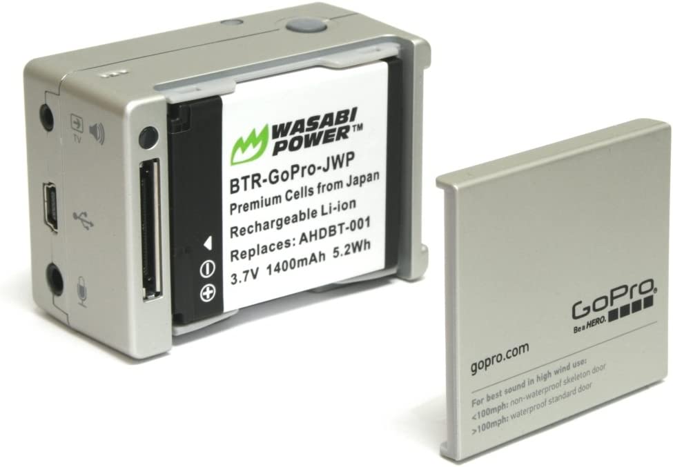 This wasabi power go Pro hero/Hero2 charger with 2 Li-ion batteries kit. Each wasabi power battery features Japanese 3.7-Volt, 1,400 milliamp hour cells. The mini Rapid AC charger features a foldout us plug, 110-volt to 240-volt input, car charging adapter and European plug. Batteries and chargers are fully compatible with the go Pro original battery and charger. All items include a 3-year manufacturer warranty.