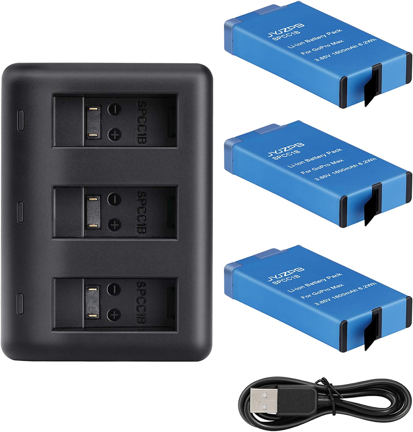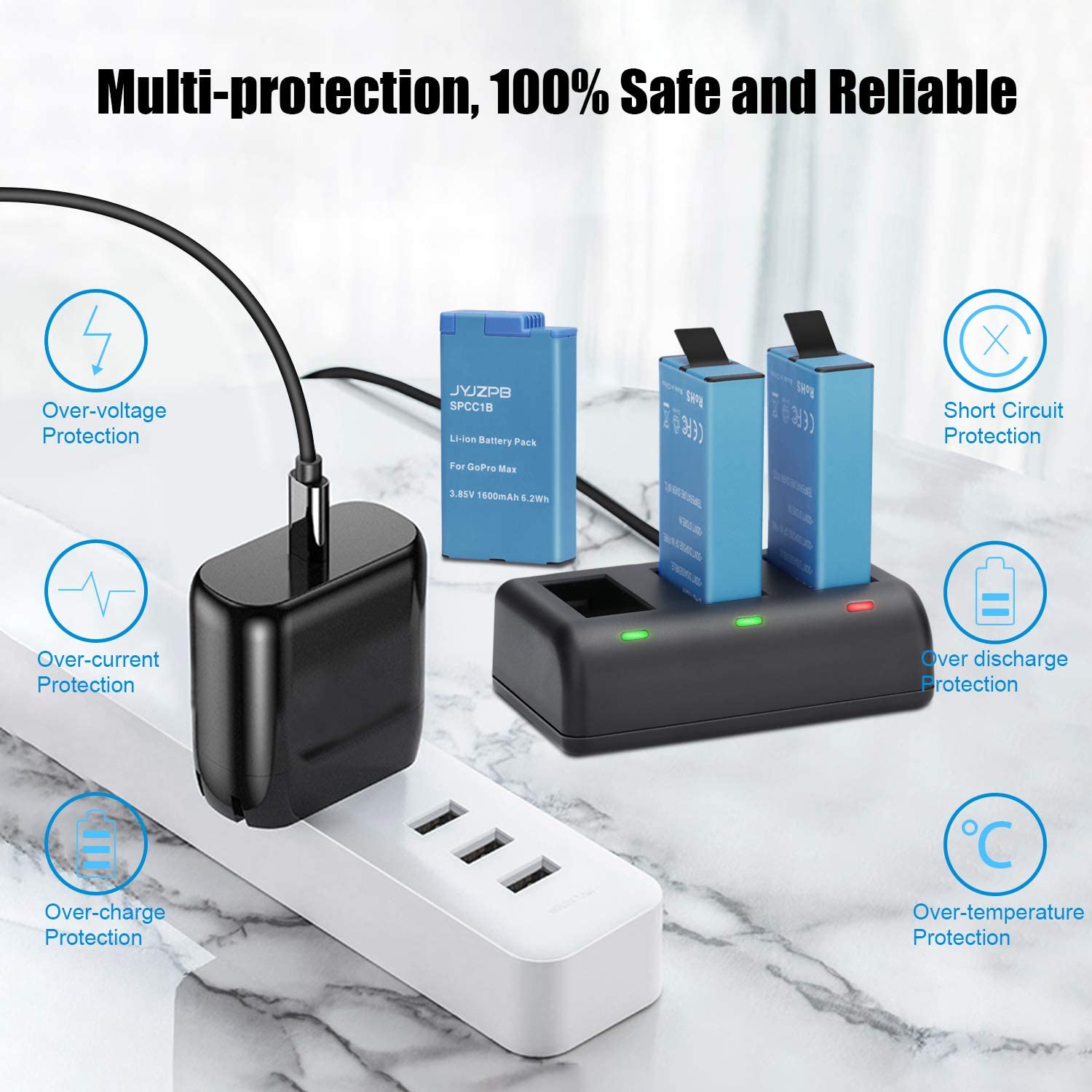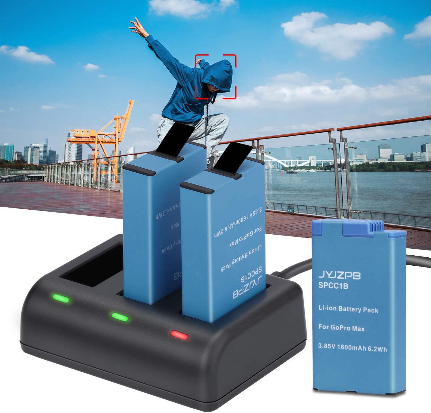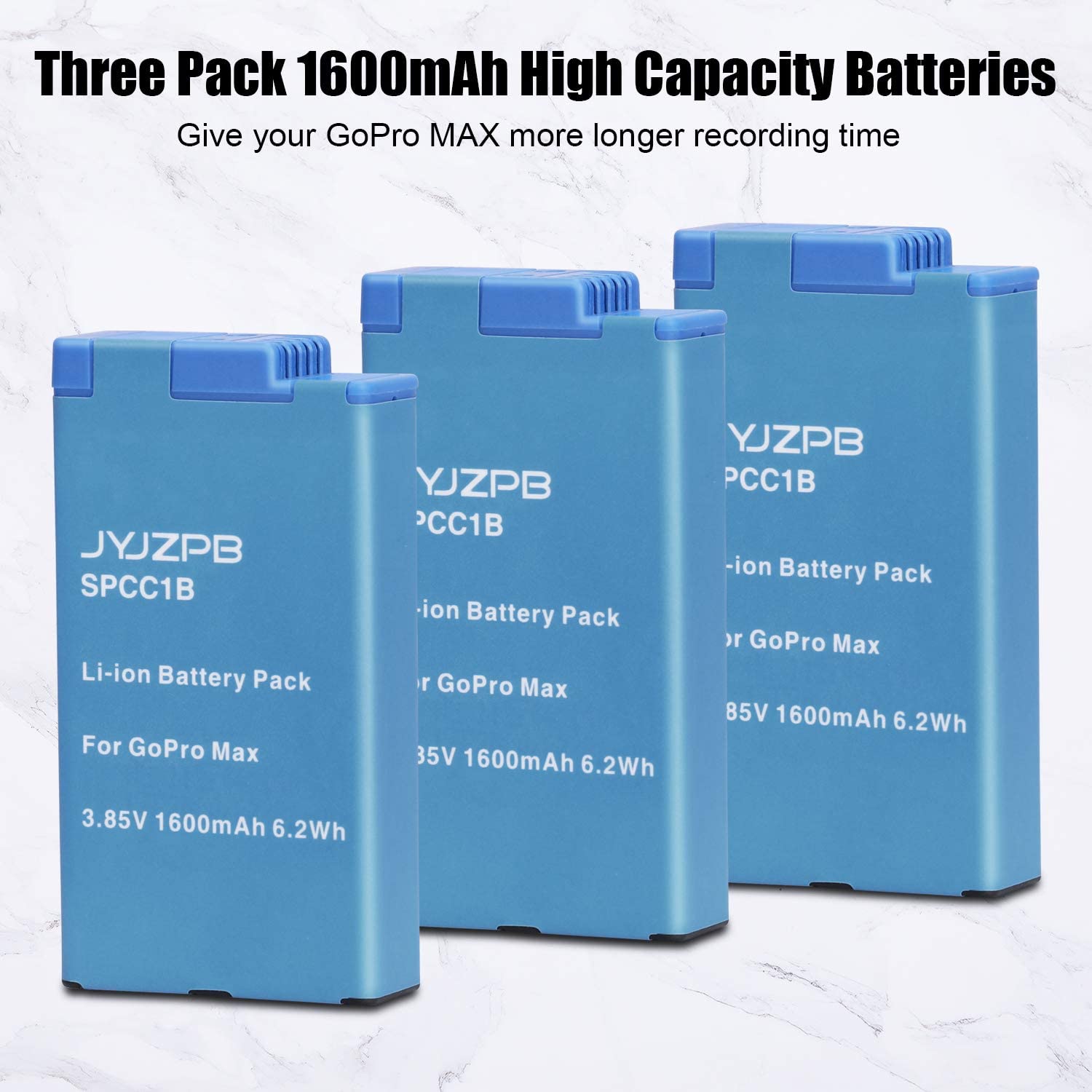 JYJZPB MAX Replacement Battery 3-Packs and 3-Channel Battery Charger for GoPro MAX 360 (Fully Compatible with Original GoPro MAX)