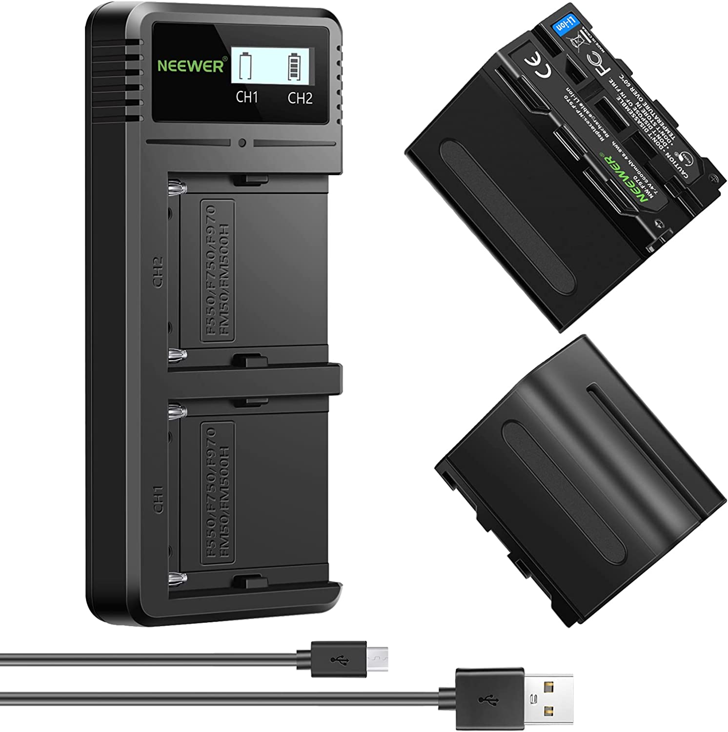 Neewer Fast Charger Dual USB with 2-Pack 6600mAh Replacement NP-F970 Batteries, Compatible with Sony NP-F970 F960 F950 F770 F750 F570 F550 ,Handycam and Neewer Led Light, Monitor, Motorized Slider