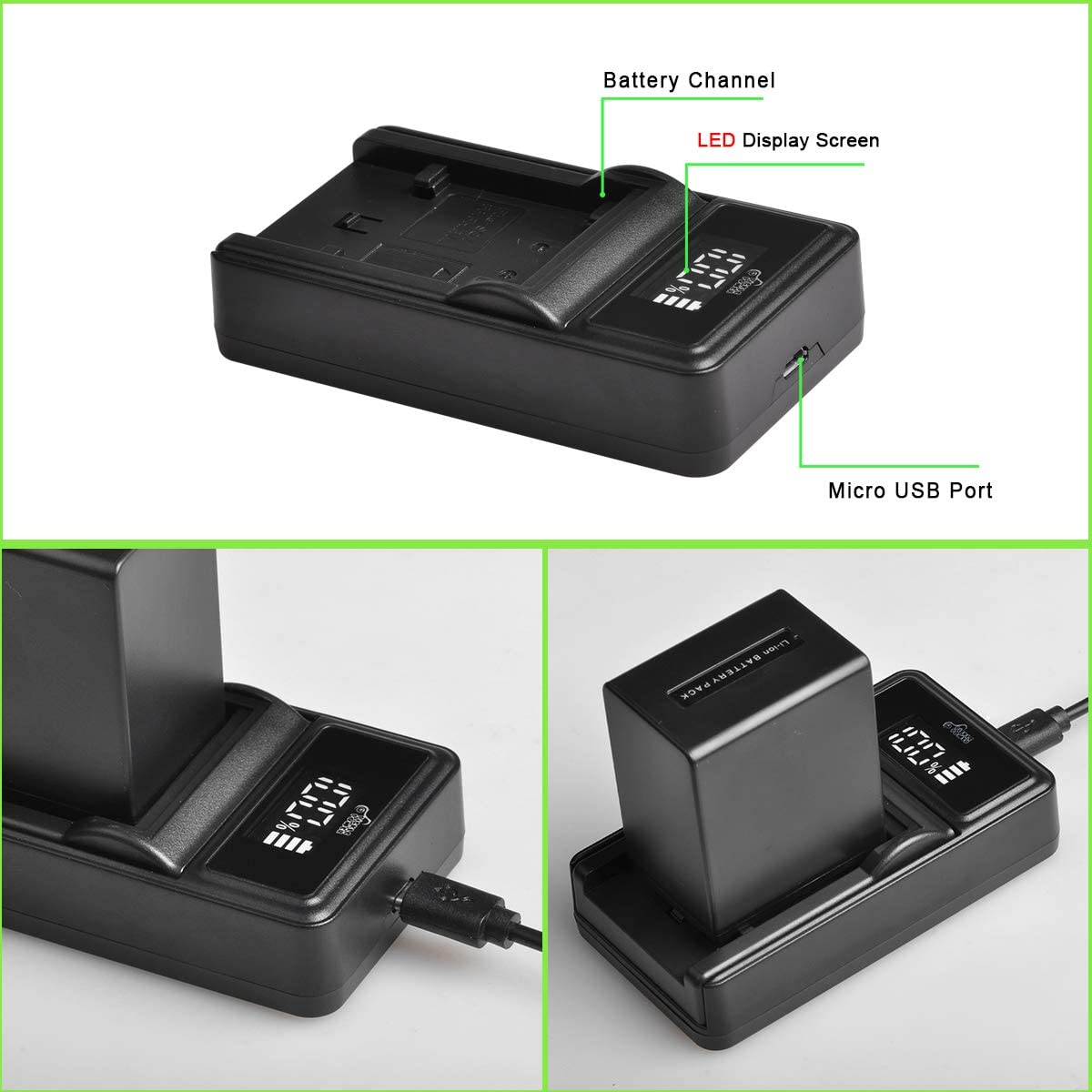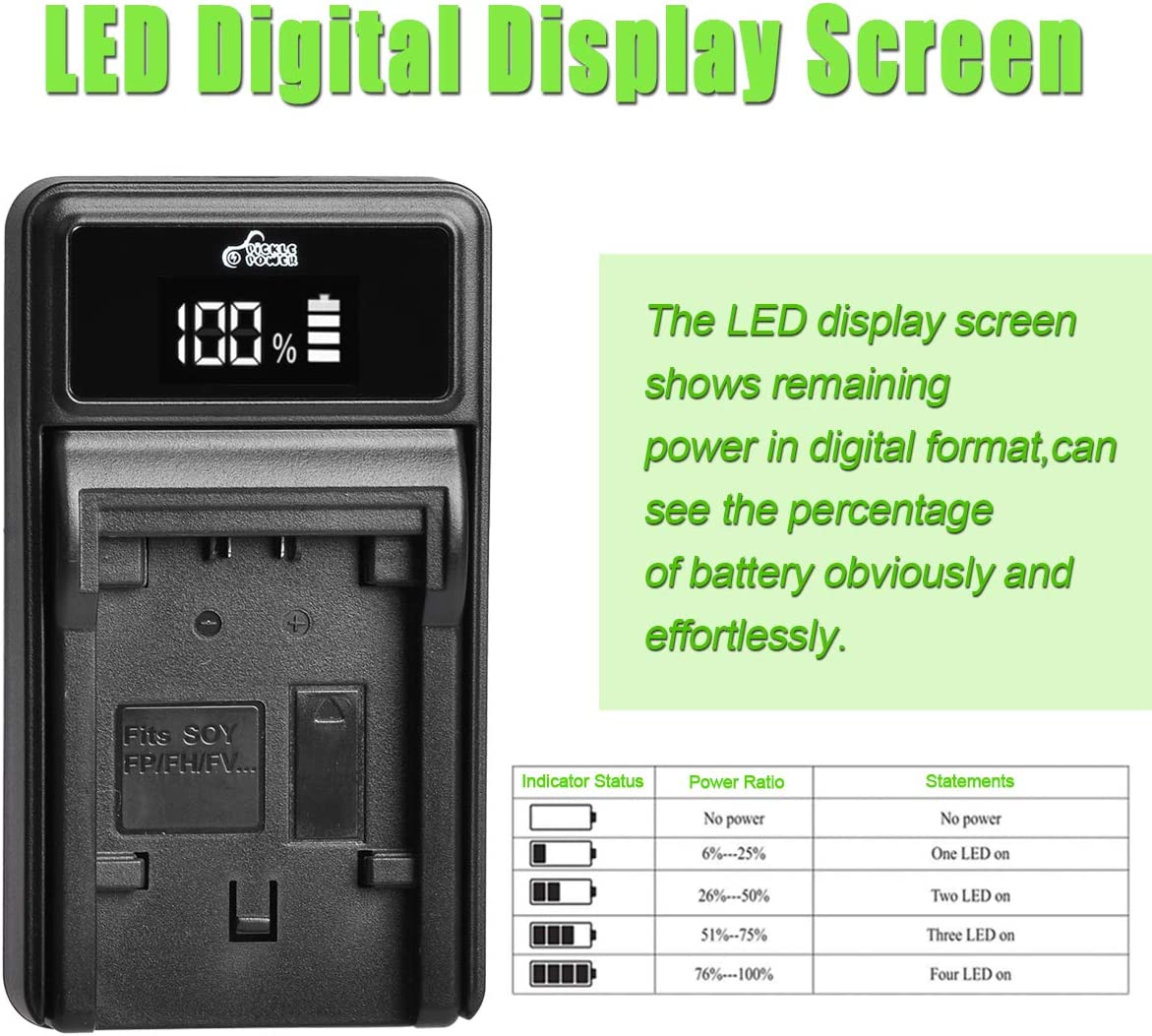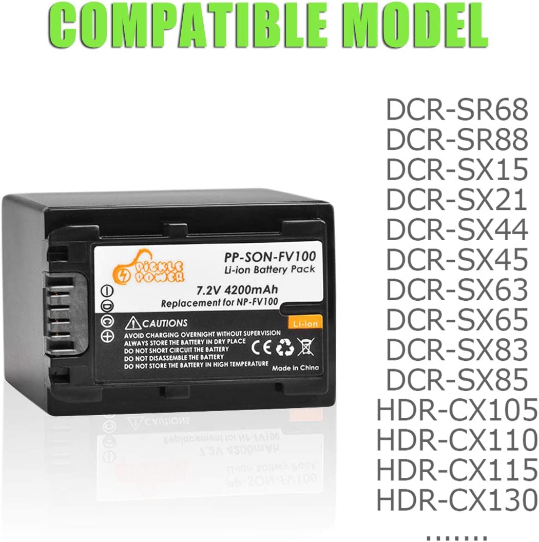 NP-FV100 Battery and LED Charger Compatible with Sony DCR-SX44 SX45 DCR-SX63 SX65 HDR-CX160 CX110 CX115 CX130 CX150 CX200 CX300 HDR-PJ10 PJ30V PJ50 PJ200 PJ230 PJ260V PJ380 DCR-SR68 SR15 SR21 SR88