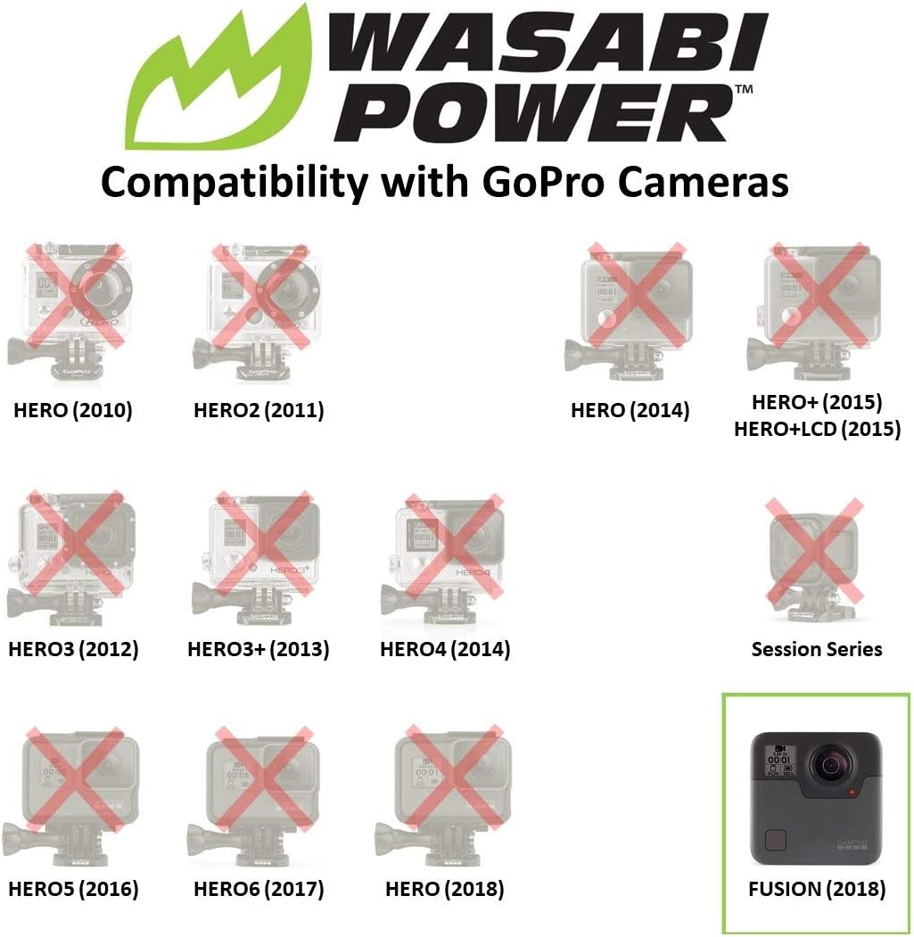 Wasabi Power Battery (2-Pack) and Dual USB Charger for GoPro Fusion and GoPro ASBBA-001