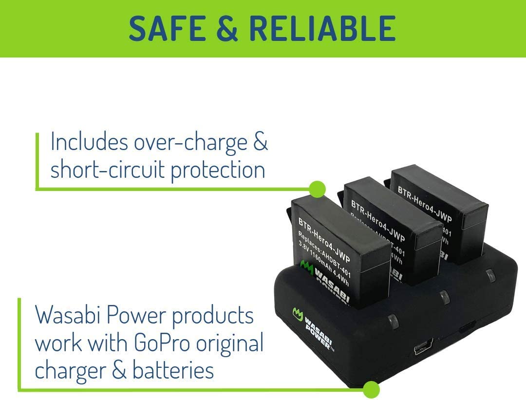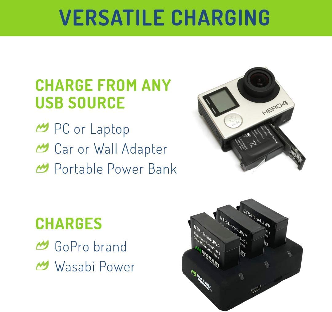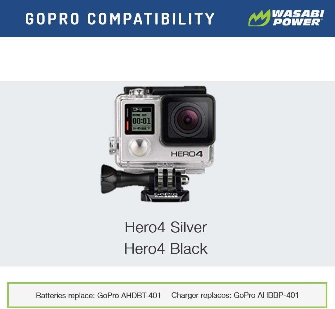 • Compatible with the Hero4 Black and Hero4 Silver models; Wasabi Power charger works with GoPro batteries; GoPro Charger and camera can charge Wasabi Power batteries