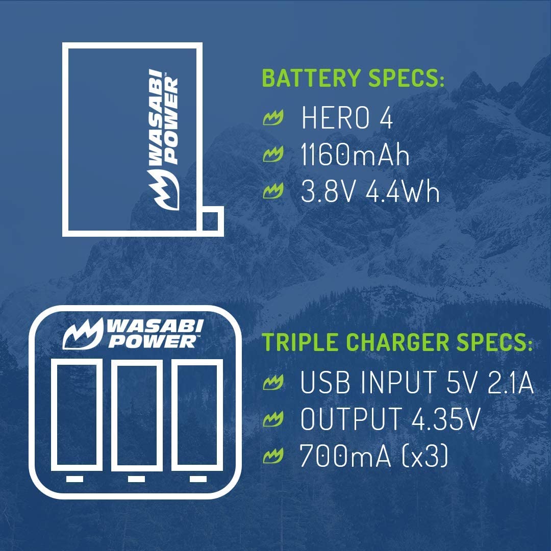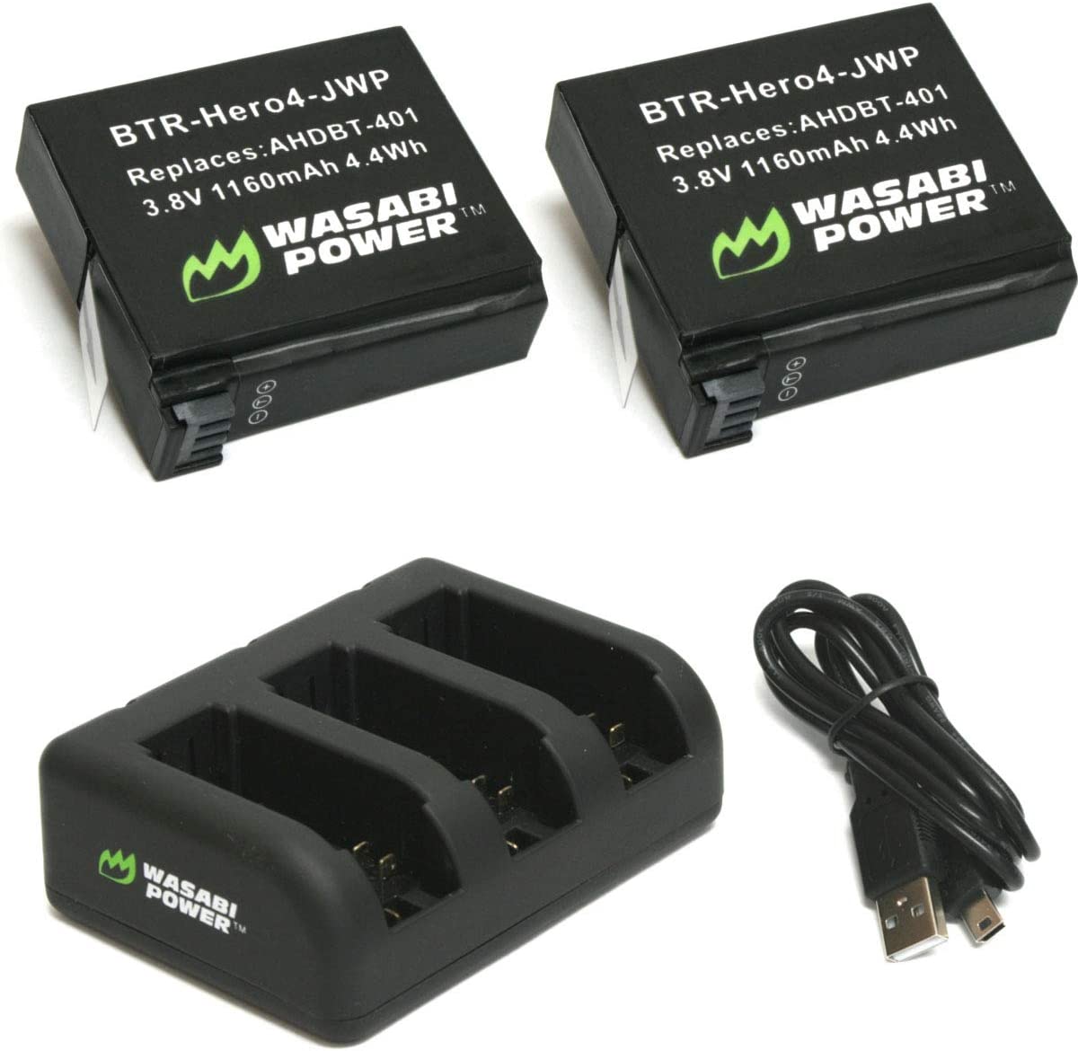Wasabi Power HERO4 Battery (x2) and USB Triple Charger for GoPro AHDBT-401, Hero 4