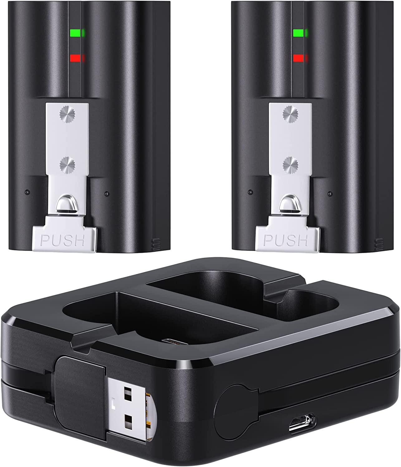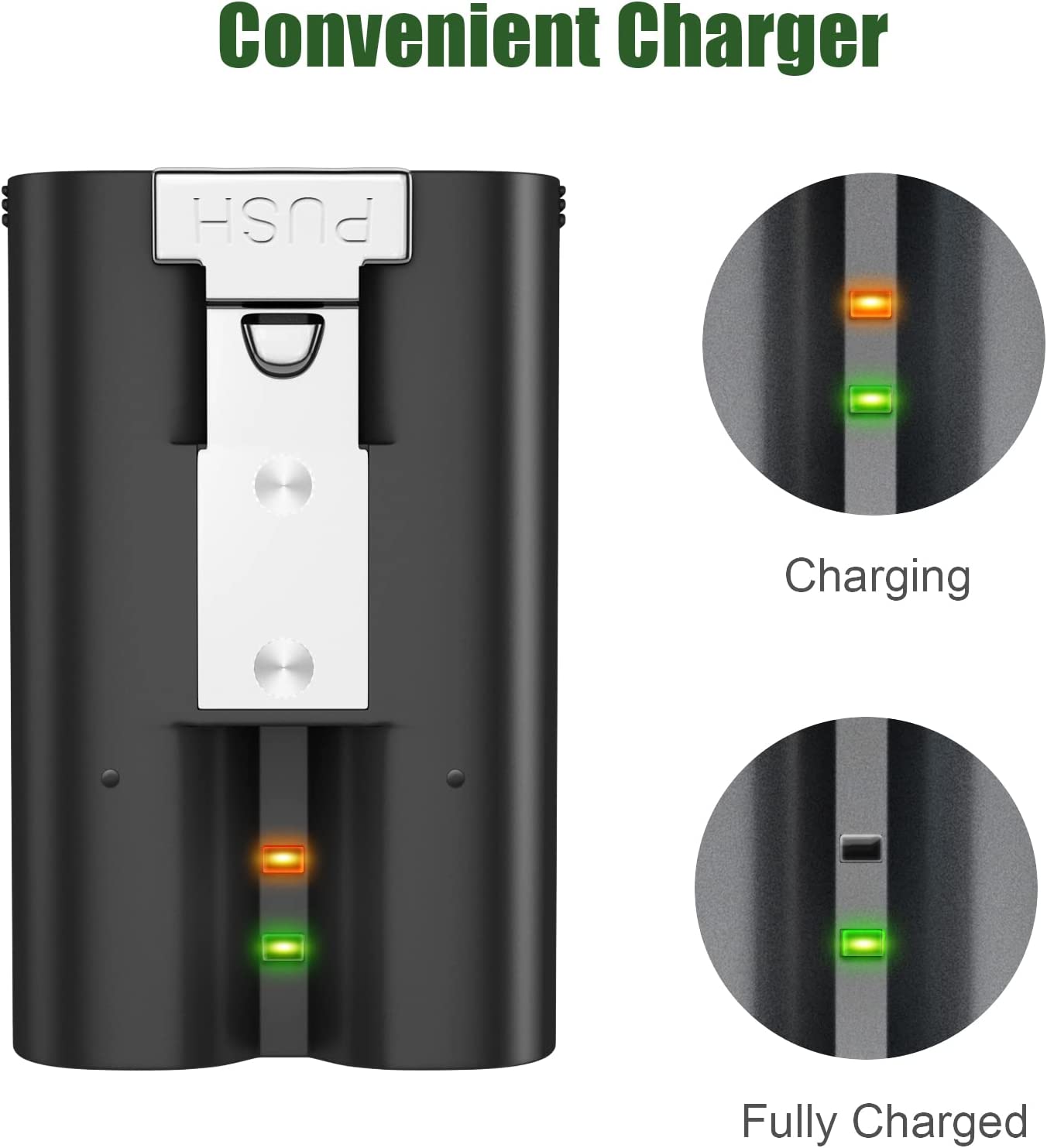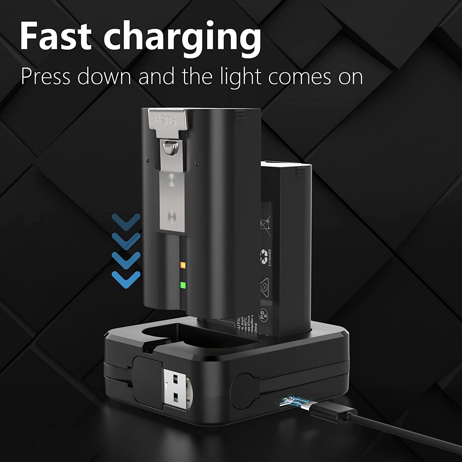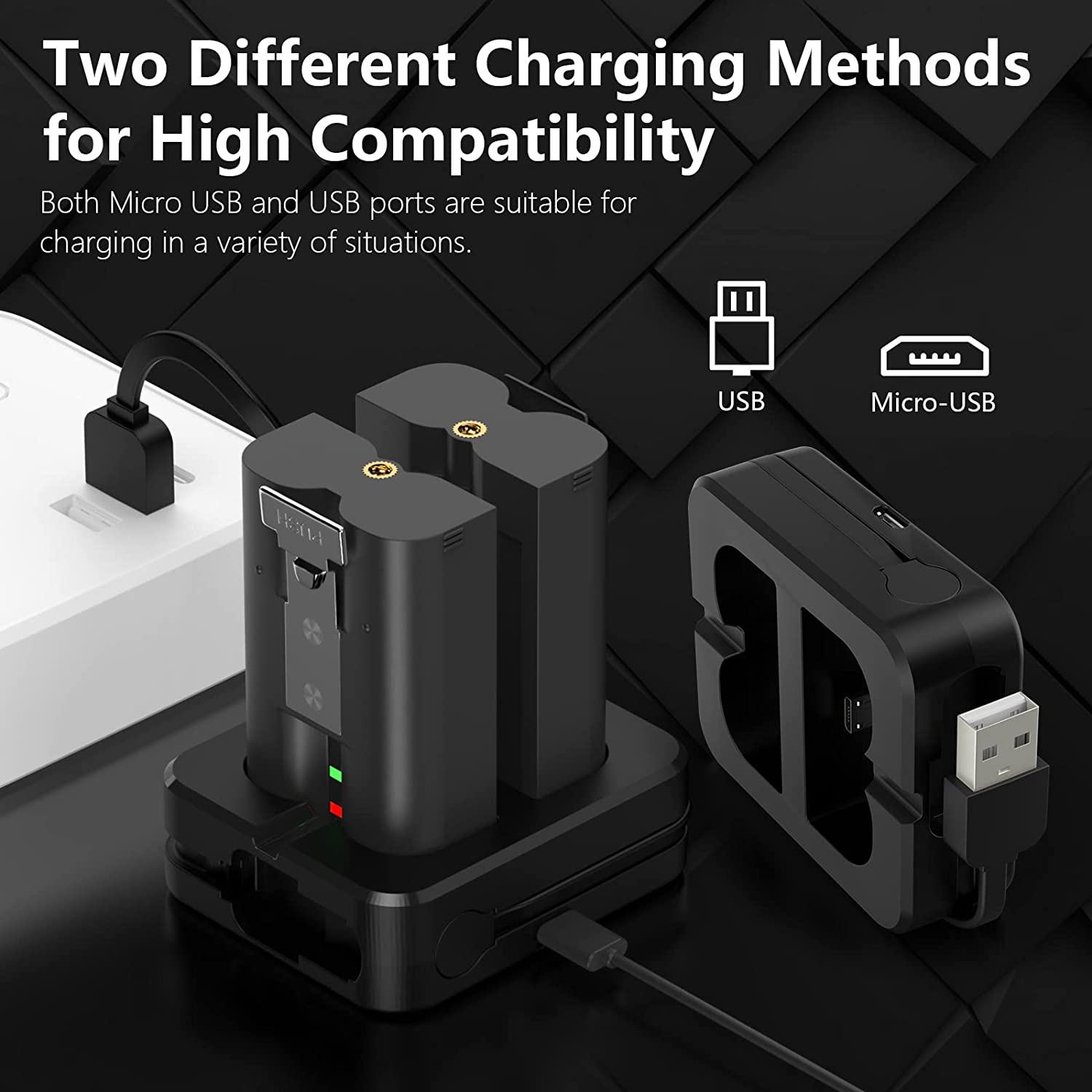 • 【USB Charging Station】:Dual Charging Docks Allow You To Charge Up To Two Batteries Simultaneously,led Lights Display Charging Status Of Both Batteries.Simply Push The Battery Down Into The Charging Slot To Charge,make sure the battery is charging