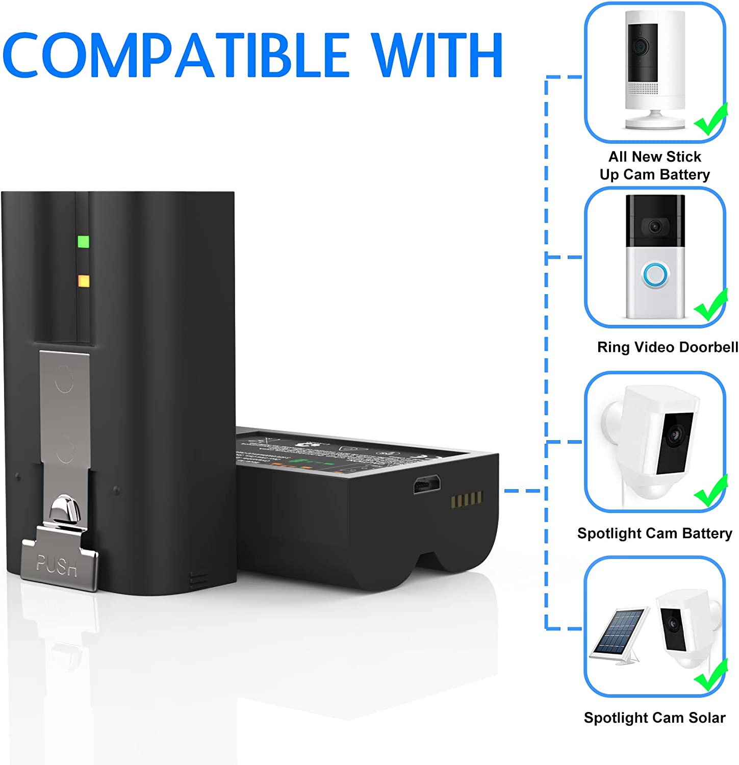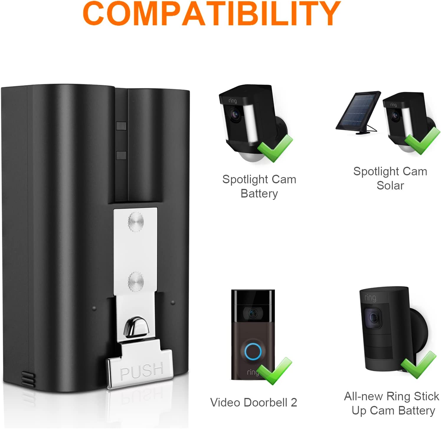 • 【Ring Rechargeable Battery -2 packs】:The battery has a larger capacity and better price compared to the original battery,suitable for doorbell camera 2/3/4, ring camera battery, spotlight camera(Note: Not for Spotlight Pro/Plus,Stick Up Cam)