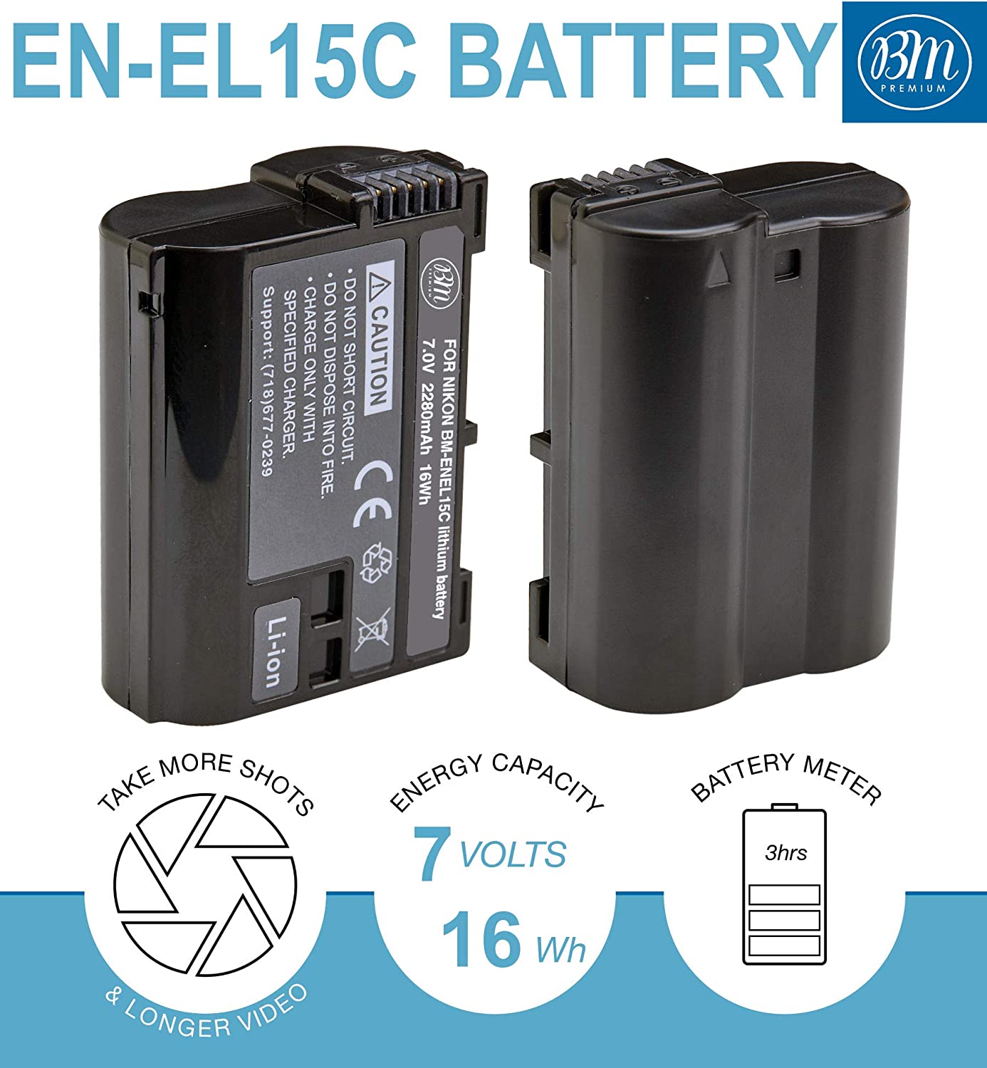 Bring your digital camera back to life with a new battery. Make sure you never miss another once-in-a-lifetime moment by having a new EN-EL15C battery specifically designed for your Nikon digital camera. BM Premium rechargeable batteries are engineered to meet or exceed OEM specifications and feature the latest battery technology, including advanced circuitry, voltage regulation, and thermal circuit protection. BM Premium stands behind their products.