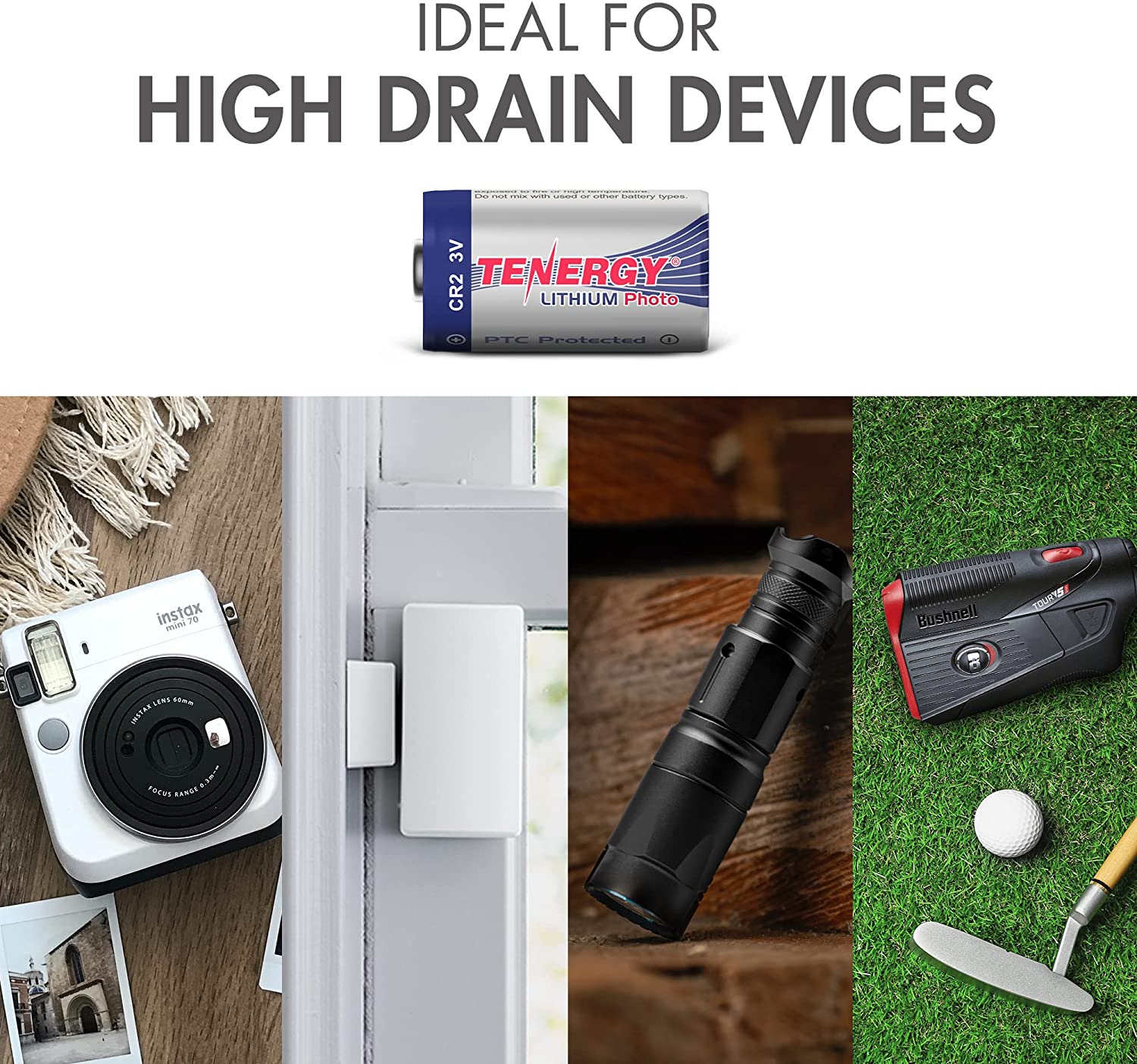 • Flash performance - Tenergy's lithium CR2 3V battery has a short and consistent recycle time. It is an ideal power source for high drain devices that require huge bursts of energy.