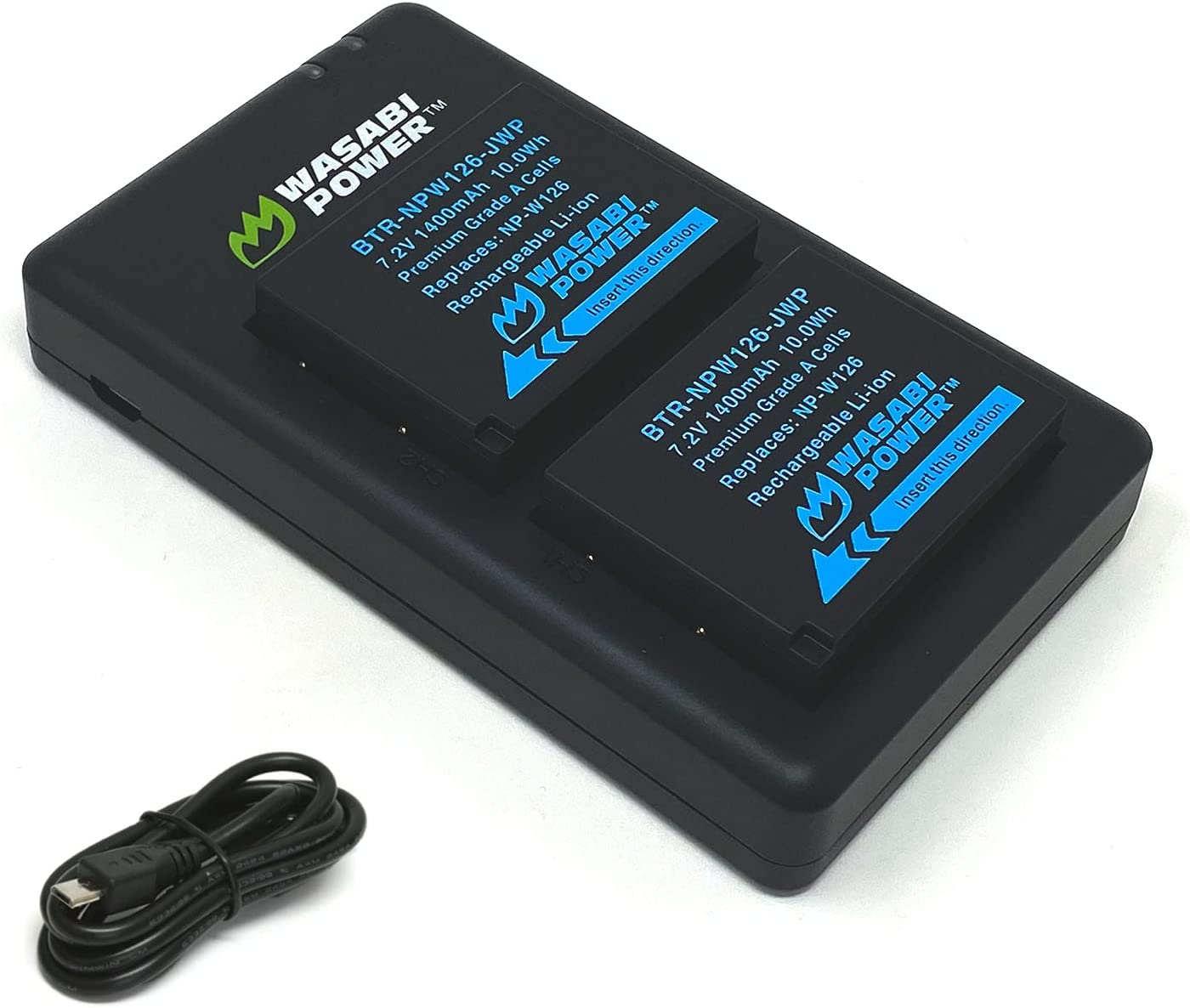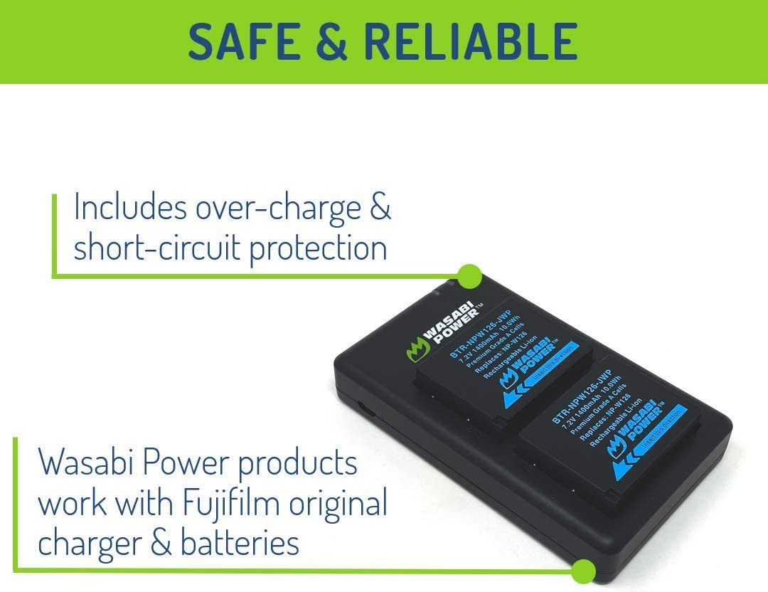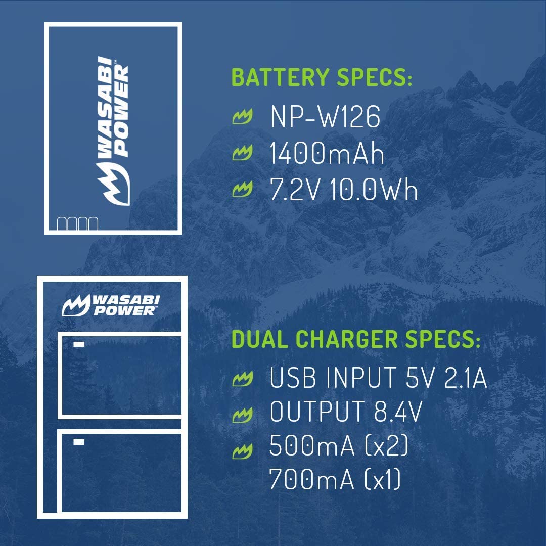 Wasabi Power NP-W126, NP-W126S Battery (2-Pack) Micro USB Dual Charger for Fuji X-T100, X-T200, X100F, X100V, X-S10, X-A5, X-A10, X-E4, X-Pro2, X-Pro3, X-T1, X-T2, X-T3, X-T10, X-T20, X-T30, X-T30 II