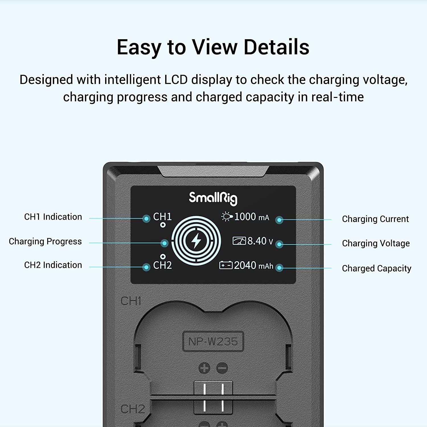 SmallRig NP-W235 Battery Charger Set for Fujifilm NP-W235 Battery, Double Slot NP-W235 Charger for Fujifilm X-T5, X-T4, GFX 100S, X-H2S, for Fujifilm GFX 50S II, VG-XT4, 2040mAh - 3822