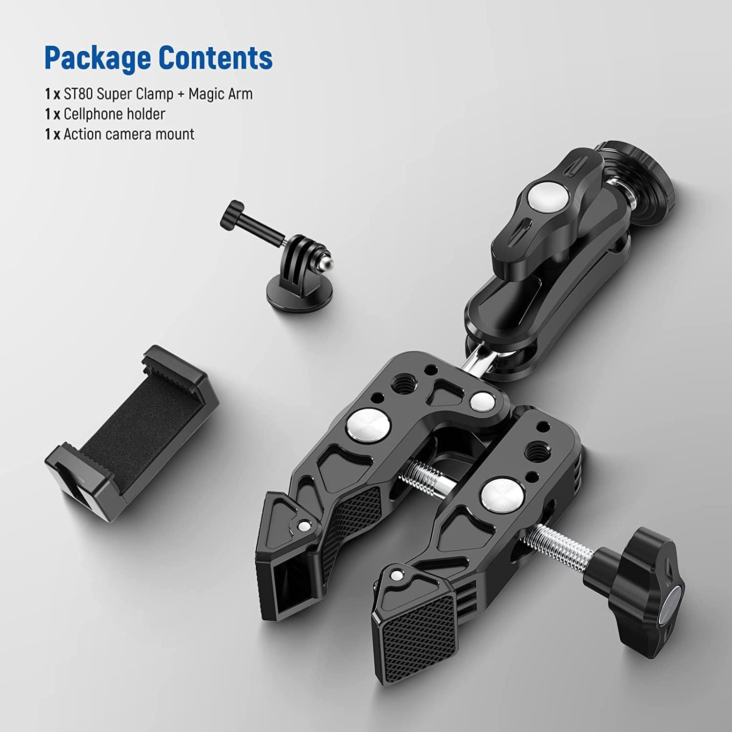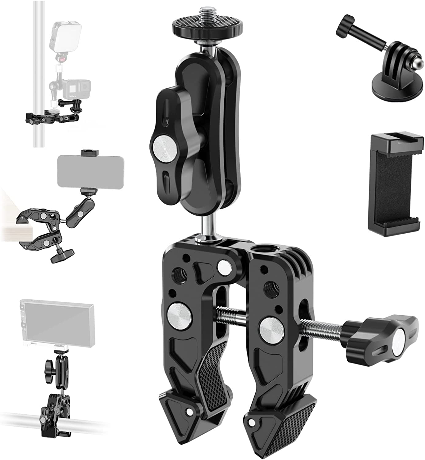 NEEWER Super Clamp with Magic Arm with Phone Holder & Action Camera Mount, All Metal 360° Double Ball Head with 1/4" & 3/8" Thread, Compatible with Smallrig GoPro Insta360, ST80