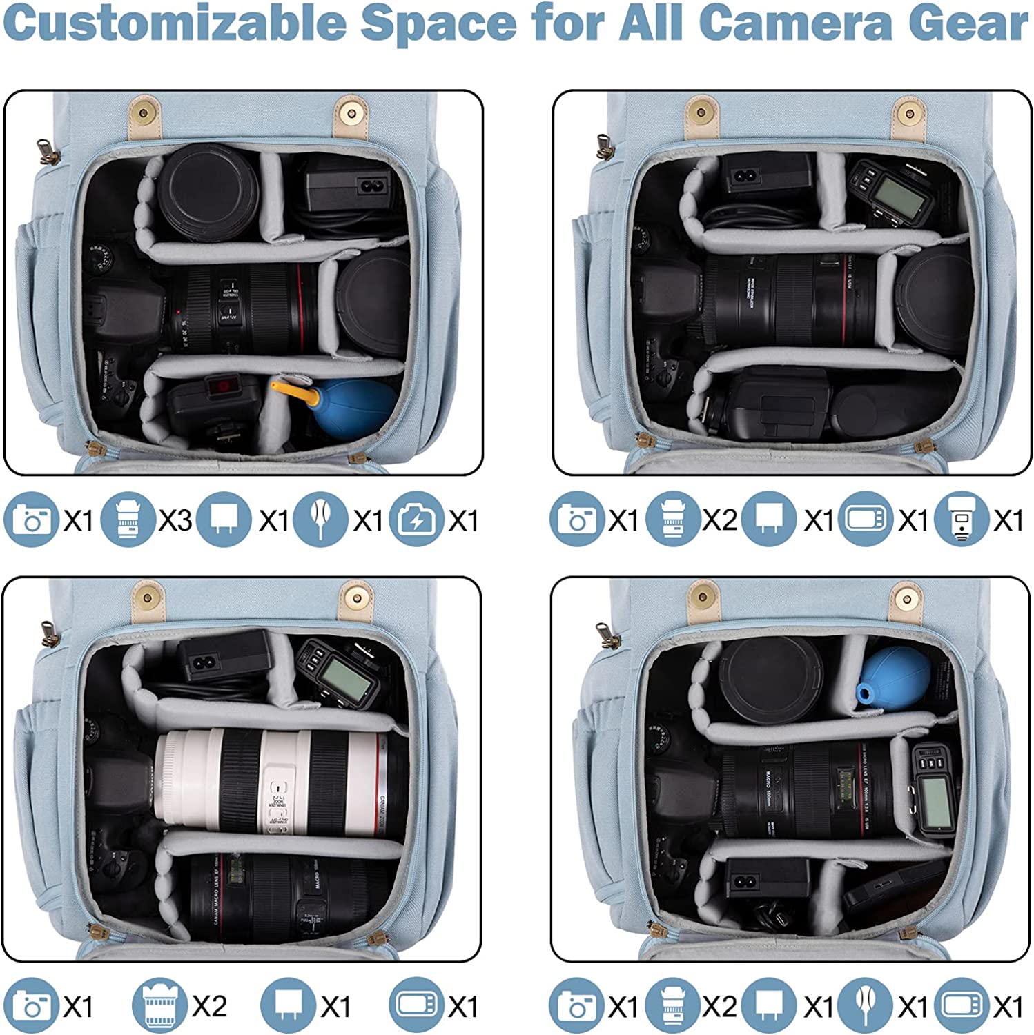• Customizable Space- Removable customize padded dividers can adjust the space according to the camera size and type of camera accessories you are carrying to protect camera and accessories better. Removing dividers can easily be transformed into a daily laptop backpack.