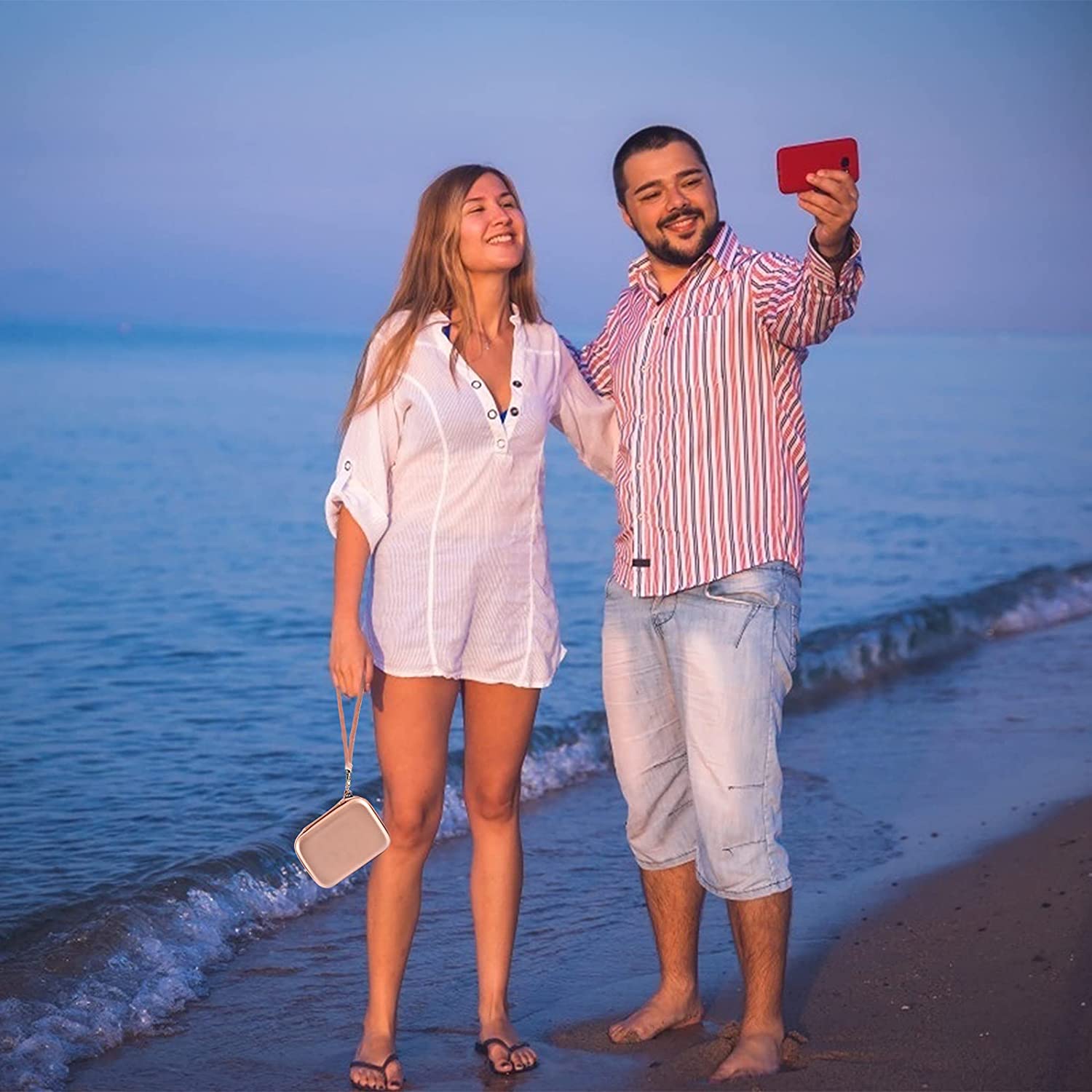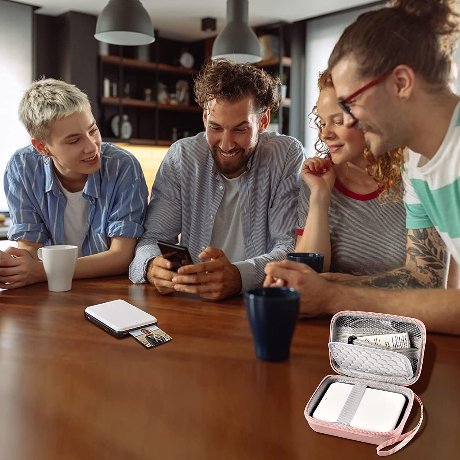 • ZIPPER MESH POCKET CAN HOLD 2X3 INCHES PHOTO PAPER - Separate soft mesh pocket can firmly hold charging cables, photo paper and various small stuffs. Come with wrist strap make your travel conveniently.