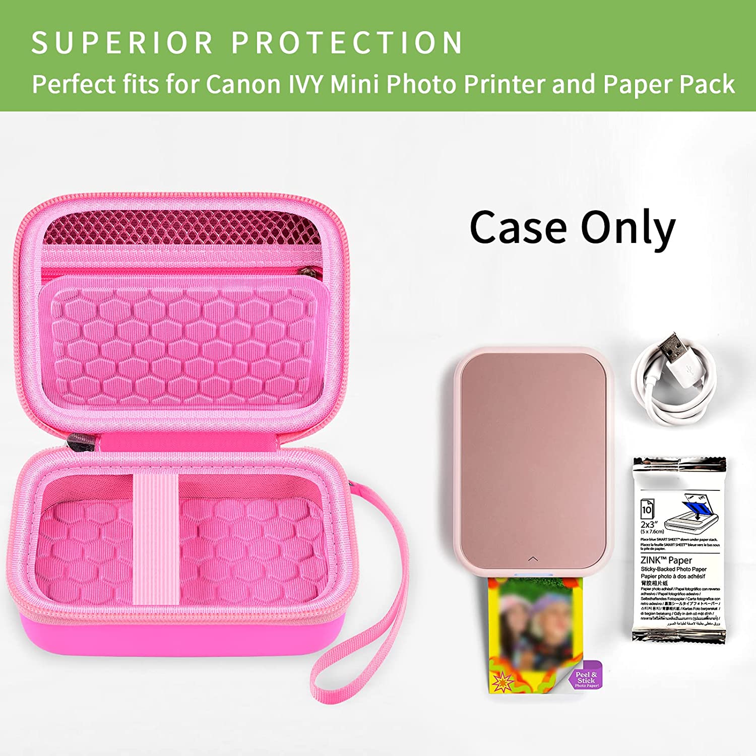Case Compatible with Canon for Ivy/for Ivy 2 Mobile Mini CLIQ CLIQ+ CLIQ2 CLIQ+2 Instant Camera Printer, Wireless Bluetooth Portable Smartphone Printer, Mesh Pocket fits Paper & Cable, Rose Gold