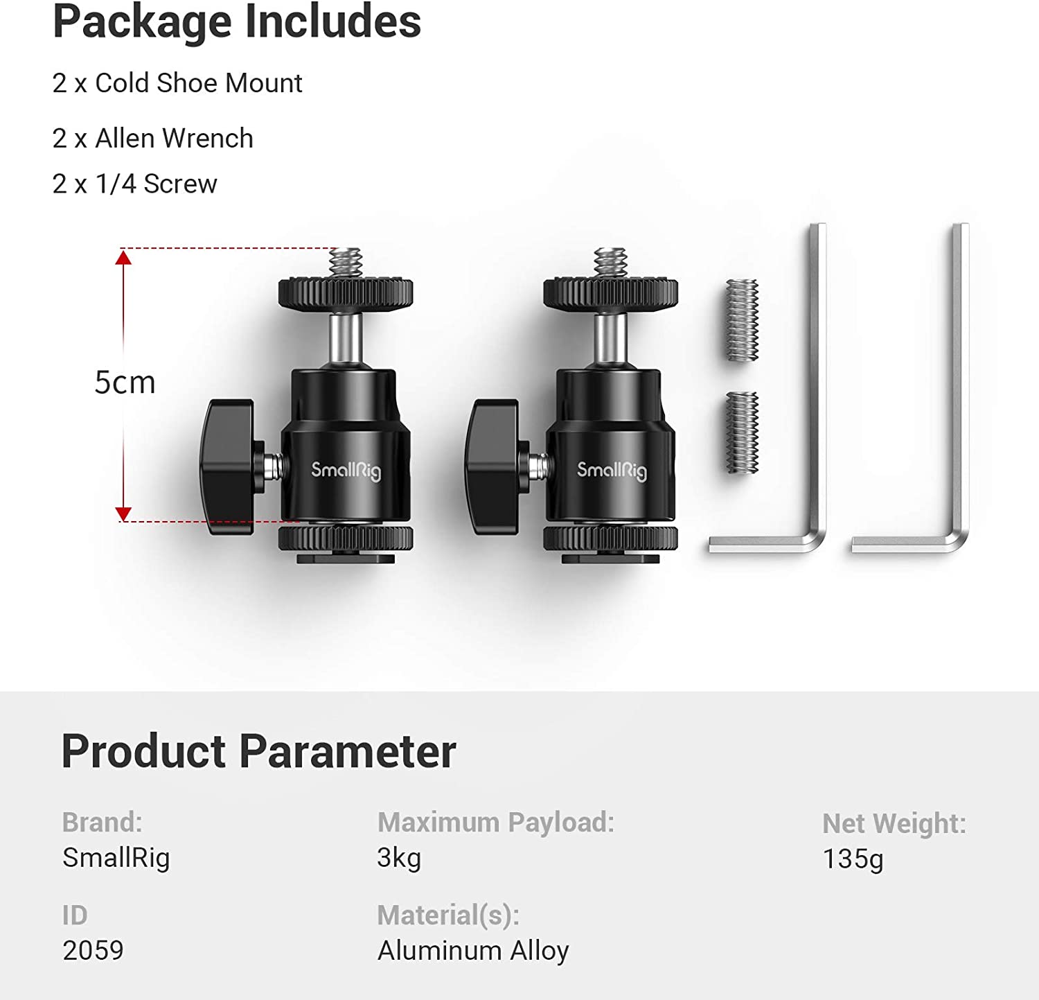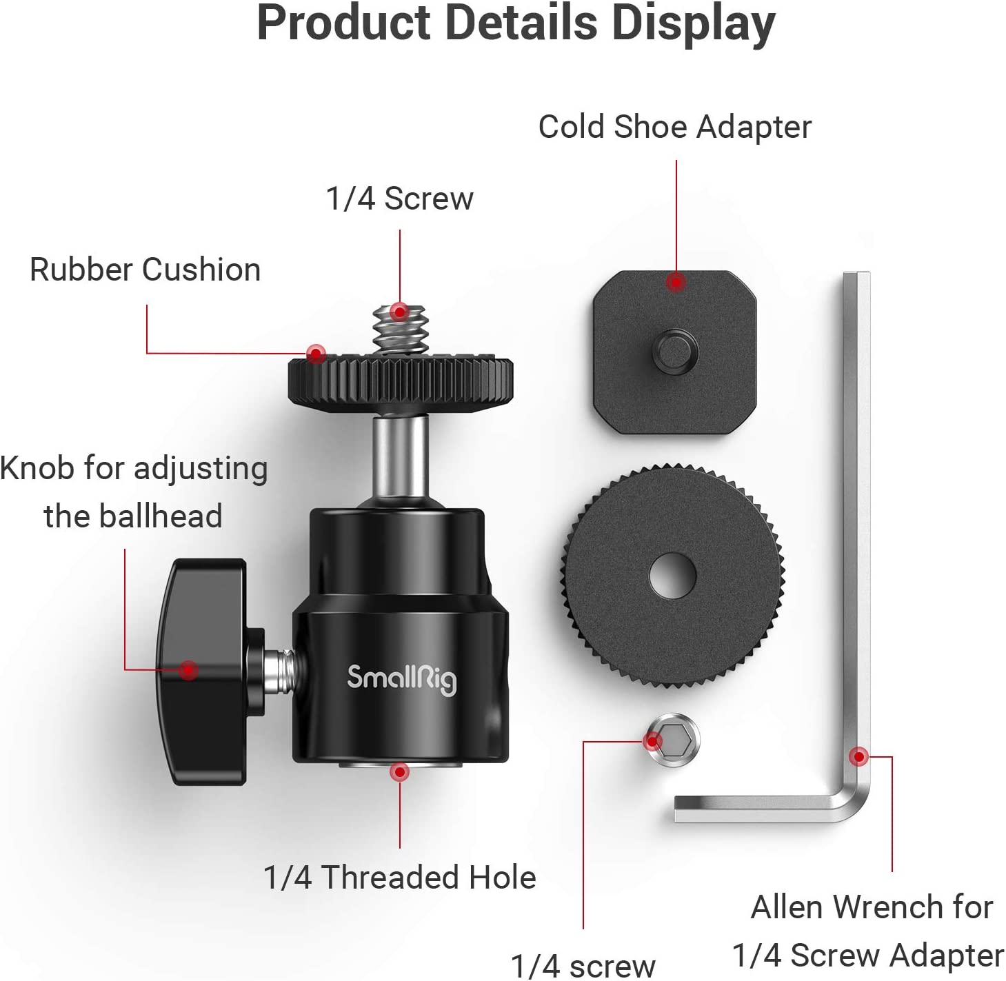 SmallRig 1/4" Camera Hot Shoe Mount, Ballhead Tripod with Additional 1/4" Screw, 2pcs Pack - 2059