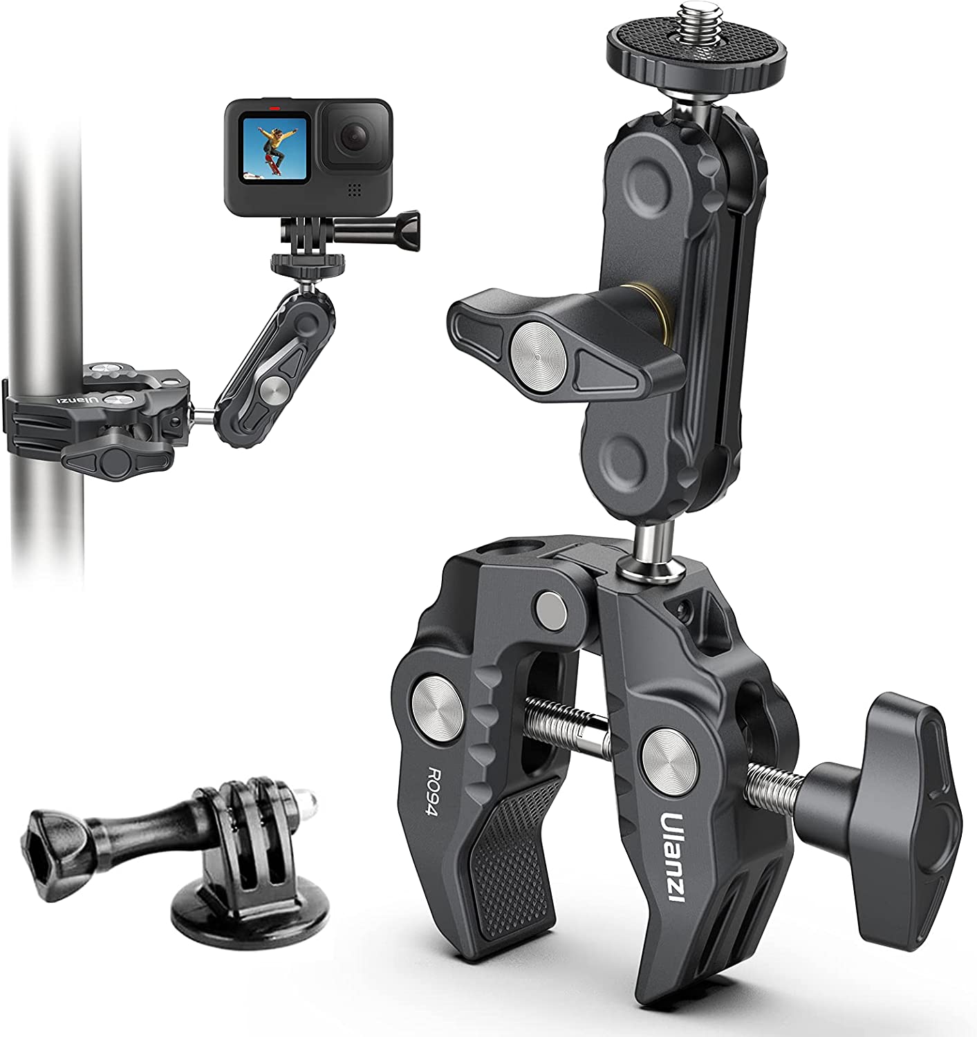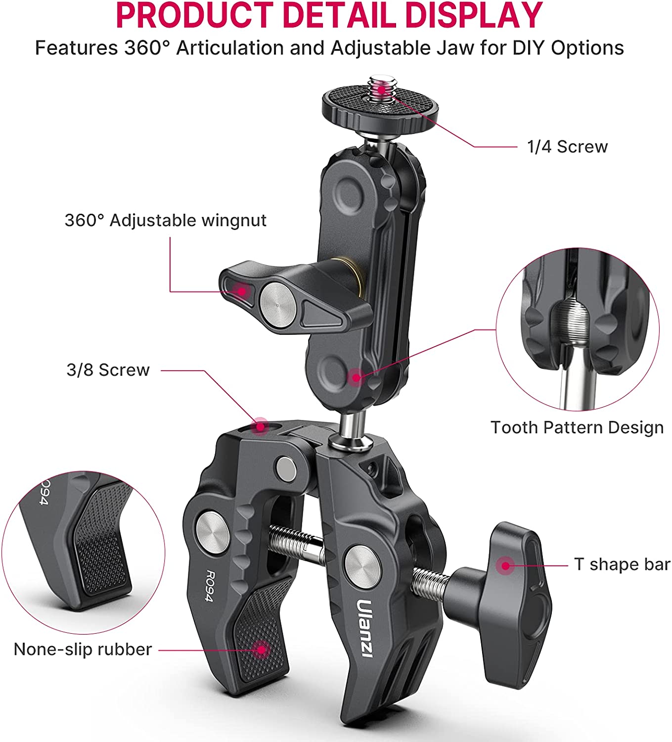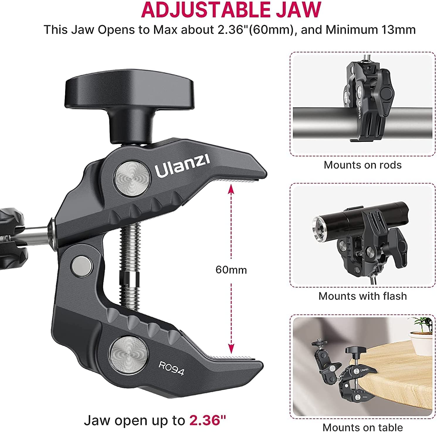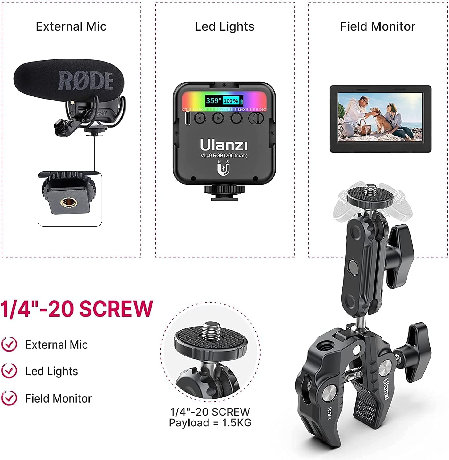 ULANZI Super Clamp Camera Clamp Mount Monitor 360° Ballhead Magic Arm Double Ball Head Adapter with 1/4"-20 & 3/8"-16 Thread for Canon Nikon DSLR Camera/Gopro/LED Lights/Ronin-M/Ronin MX/Freefly MOVI