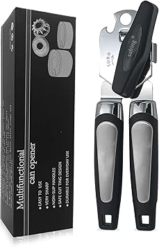 Can Opener Manual, Handheld Strong Heavy Duty Stainless Steel Can Opener, Comfortable Handle, Sharp Blade Smooth Edge, Can Openers with Multifunctional Bottle Opener