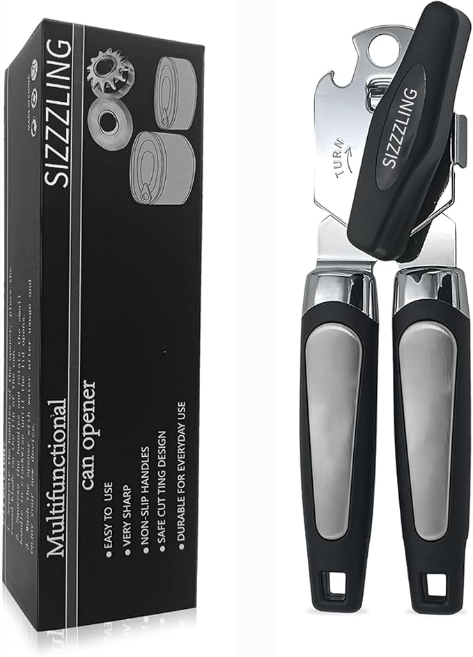 Rust Resistant Manual Can Opener, Handheld Strong Heavy Duty Stainless Steel Can Opener, Comfortable Handle, Sharp Blade Smooth Edge, Can Openers with Multifunctional Bottle Opener