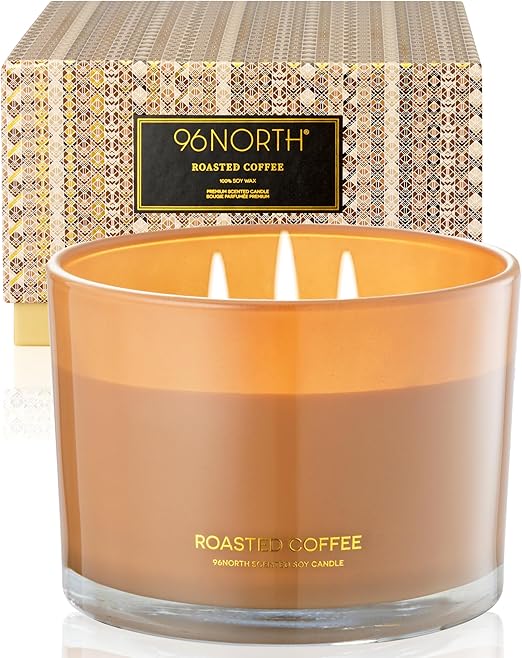 96NORTH Luxury Coffee Soy Candle | Large 3 Wick Jar Candle | Up to 50 Hours Burning Time | 100% Natural Soy Wax | Relaxing Aromatherapy Aesthetic Candle | Housewarming Gift for Men and Women