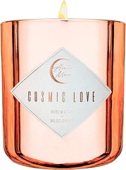 Auric Moon | Rosewater + Wildflowers Scented Luxury Soy Coconut Candle for Women | Slow 70+ Hour Burn | Wood Crackling Wicks | 12 Oz Premium Glass | Hand-Poured in California