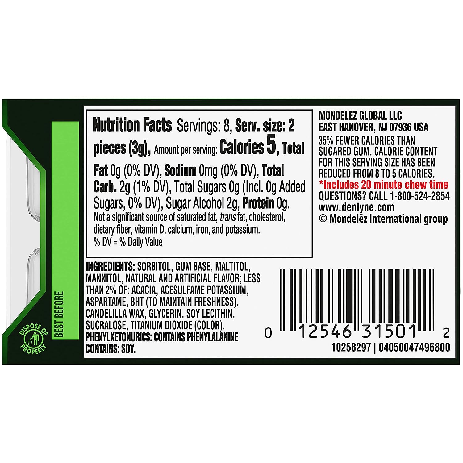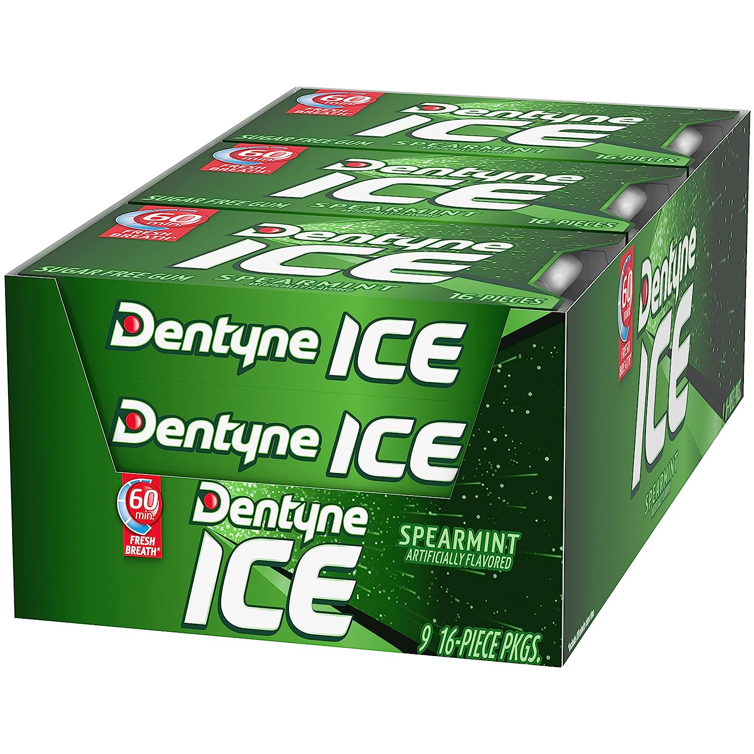 Dentyne Ice Peppermint Sugar Free Gum freshens your breath for up to 60 minutes, including 20 minutes of chew time, for a long-lasting feeling of clean. These small cubes of sugarless bubble gum have 35% fewer calories than sugared mint gum, and are just the right size for a quick refresher after a meal or before an important meeting. Bright peppermint flavor lifts your spirits and leaves your mouth feeling fresh and cool. Keep these sugar free chewing gum packs in your purse, briefcase, or desk so you’re always prepared to make a good impression. Individual pieces are conveniently packaged for maximum freshness, easy access, and simple sharing. Bulk gum gives you plenty to stock your home, office or small business.