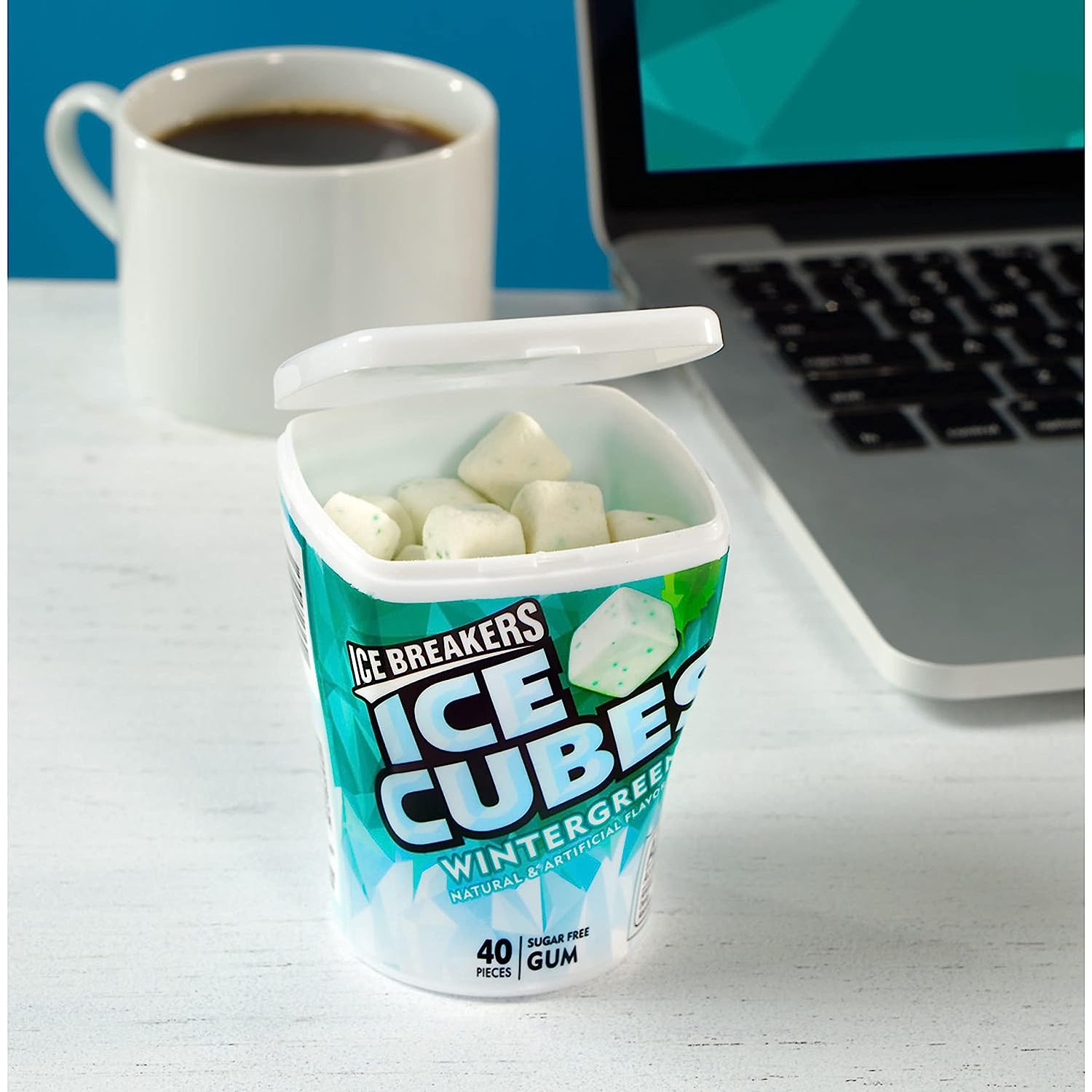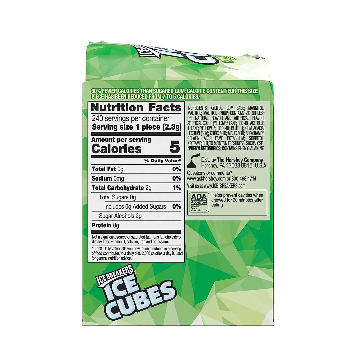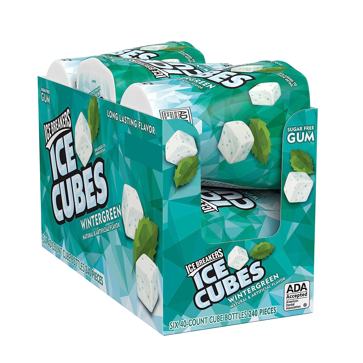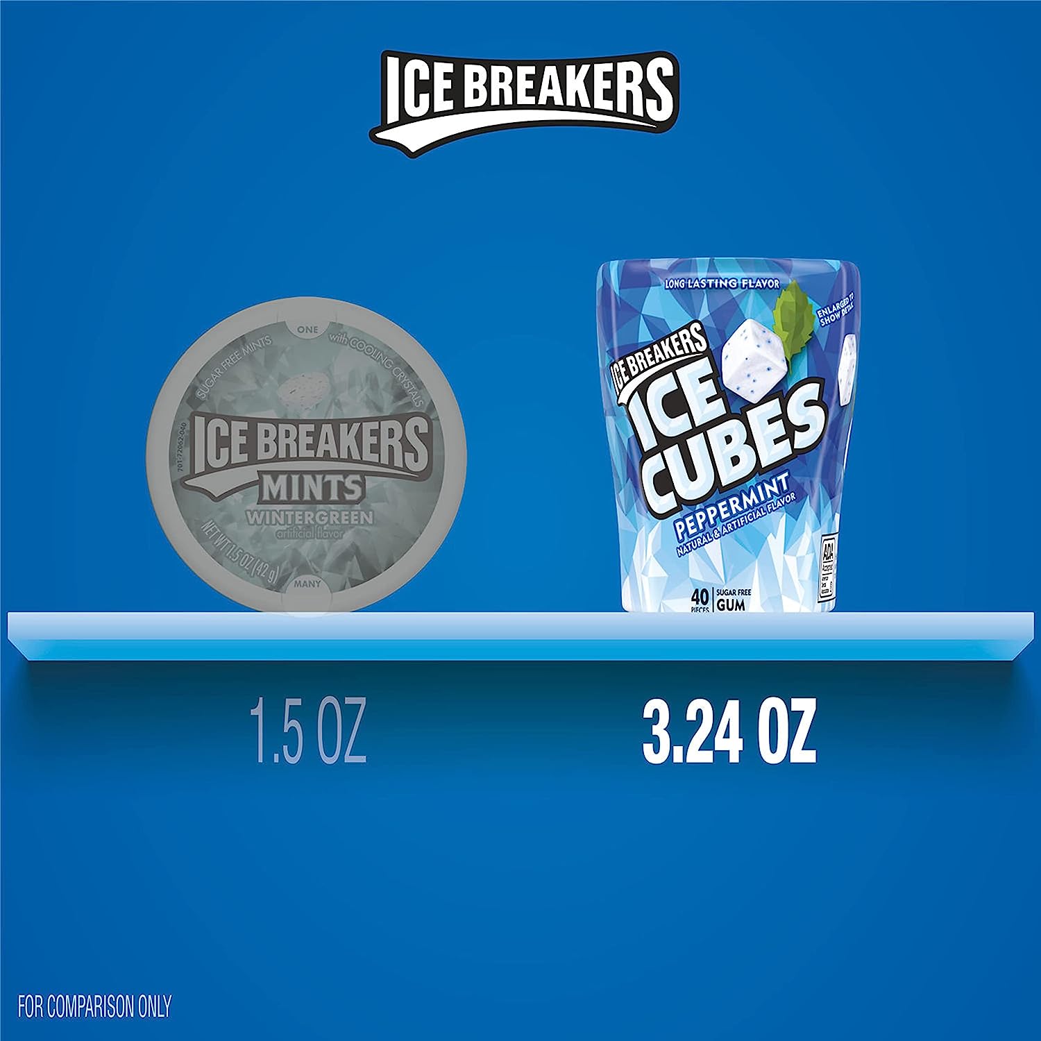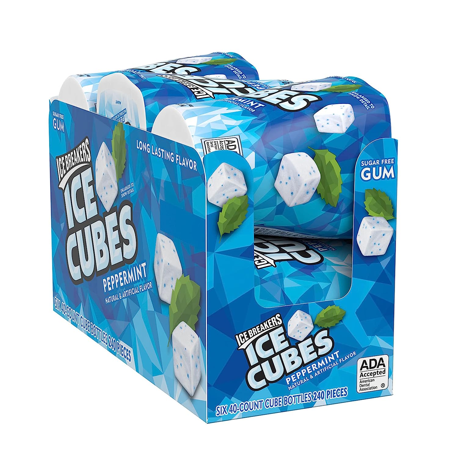 ICE BREAKERS ICE CUBES peppermint chewing gum is bursting with refreshing peppermint flavor. These minty gum cubes are the perfect size for popping into your mouth whenever you're ready for cool, invigorating flavor. With these convenient, 40-piece bottles of ICE BREAKERS ICE CUBES chewing gum, you can have a burst of peppermint, sugar free gum by your side. Keep a gum bottle with you in the car, at home and at the office for quick, delicious satisfaction. These ICE BREAKERS ICE CUBES gum pieces will keep your breath minty fresh during meetings, after lunch, throughout movie nights and in the car. With four full bottles, it's easy to share this bulk chewing gum. Display these vibrant, mint chewing gum cubes near the candy dish at home and work. They're sure to thank you for the long-lasting, peppermint gum treat. Not only does this pack of sugarless gum have 30% fewer calories than sugared gum options, but this xylitol gum also carries the American Dental Association's Seal of Acceptance. With its convenient packaging, ICE BREAKERS ICE CUBES chewing gum packs can travel with you. These four packs are great if you are looking for bulk gum.