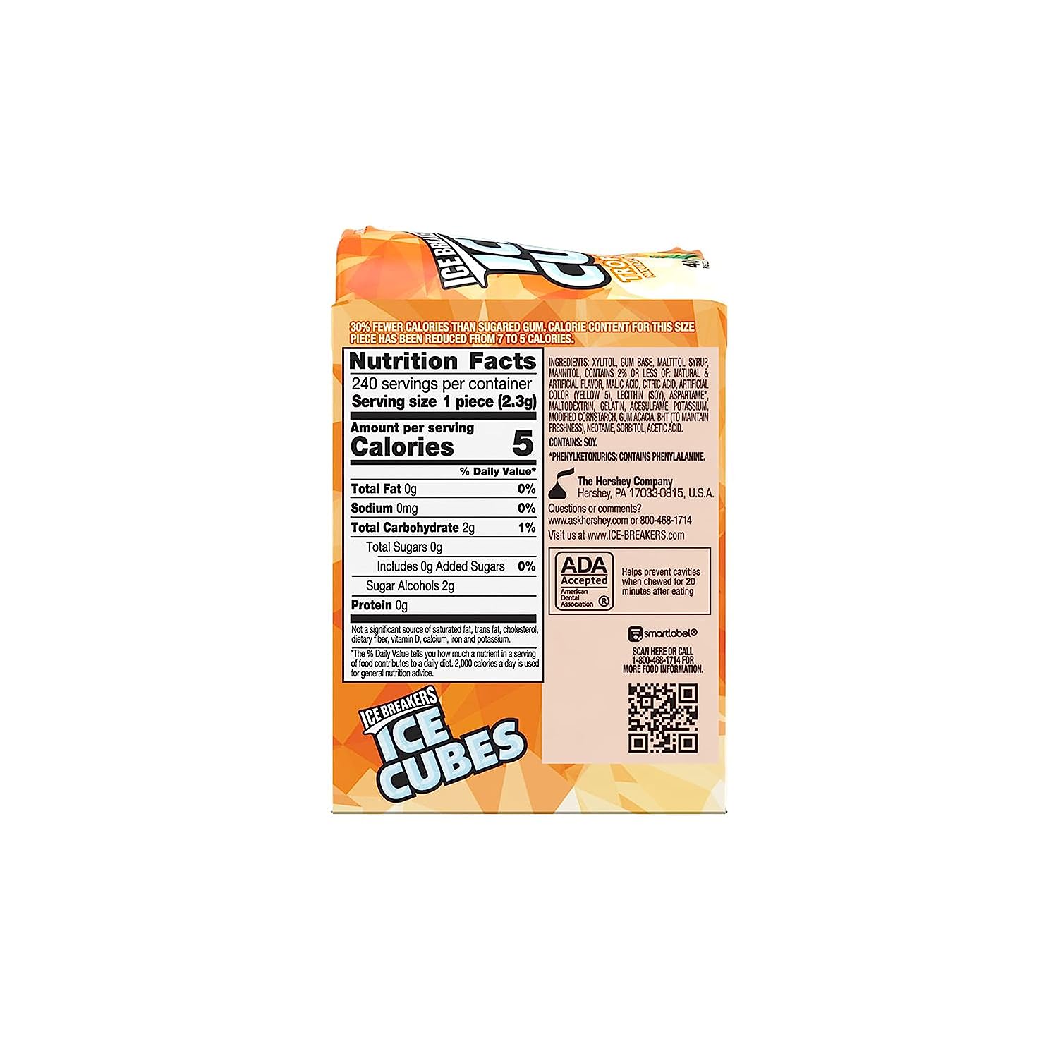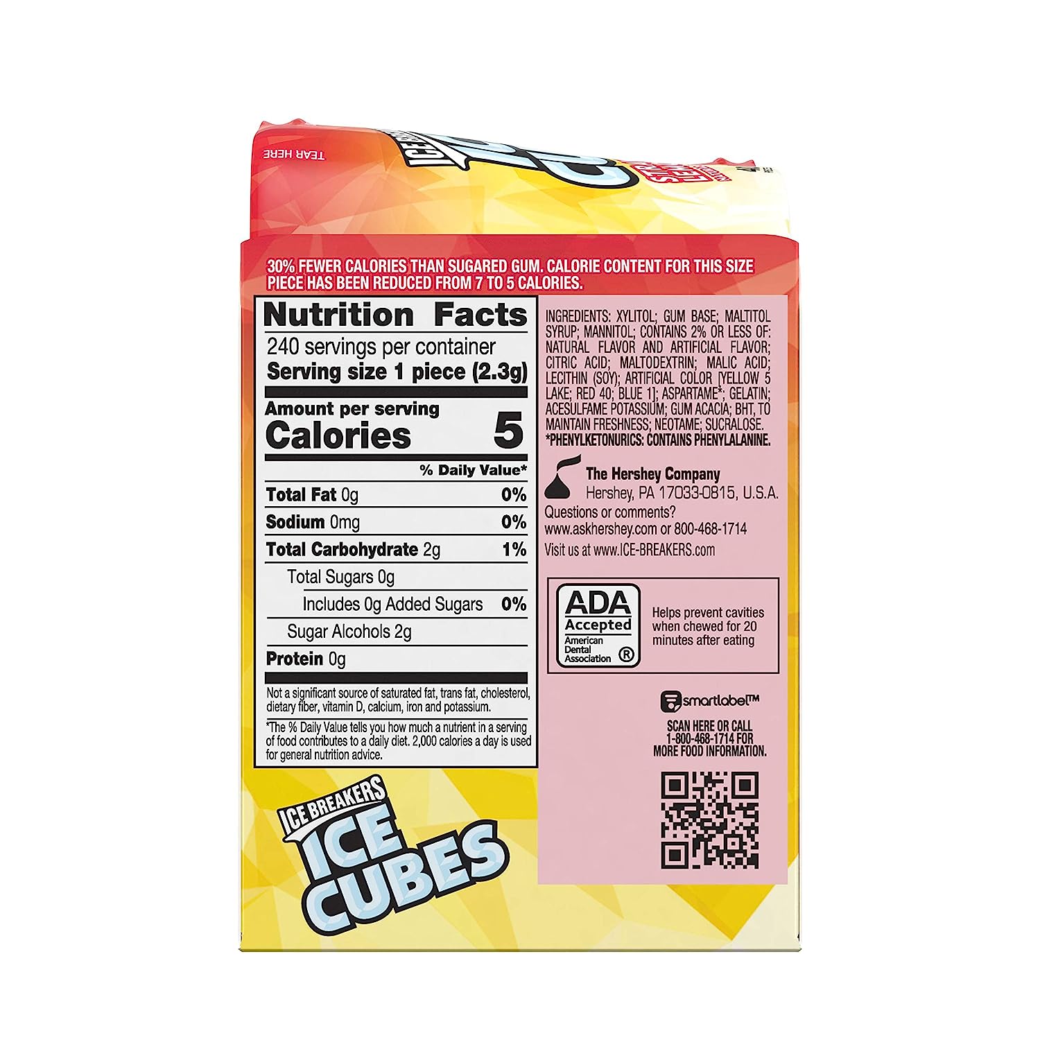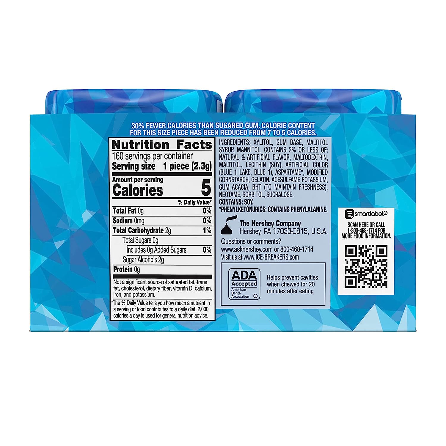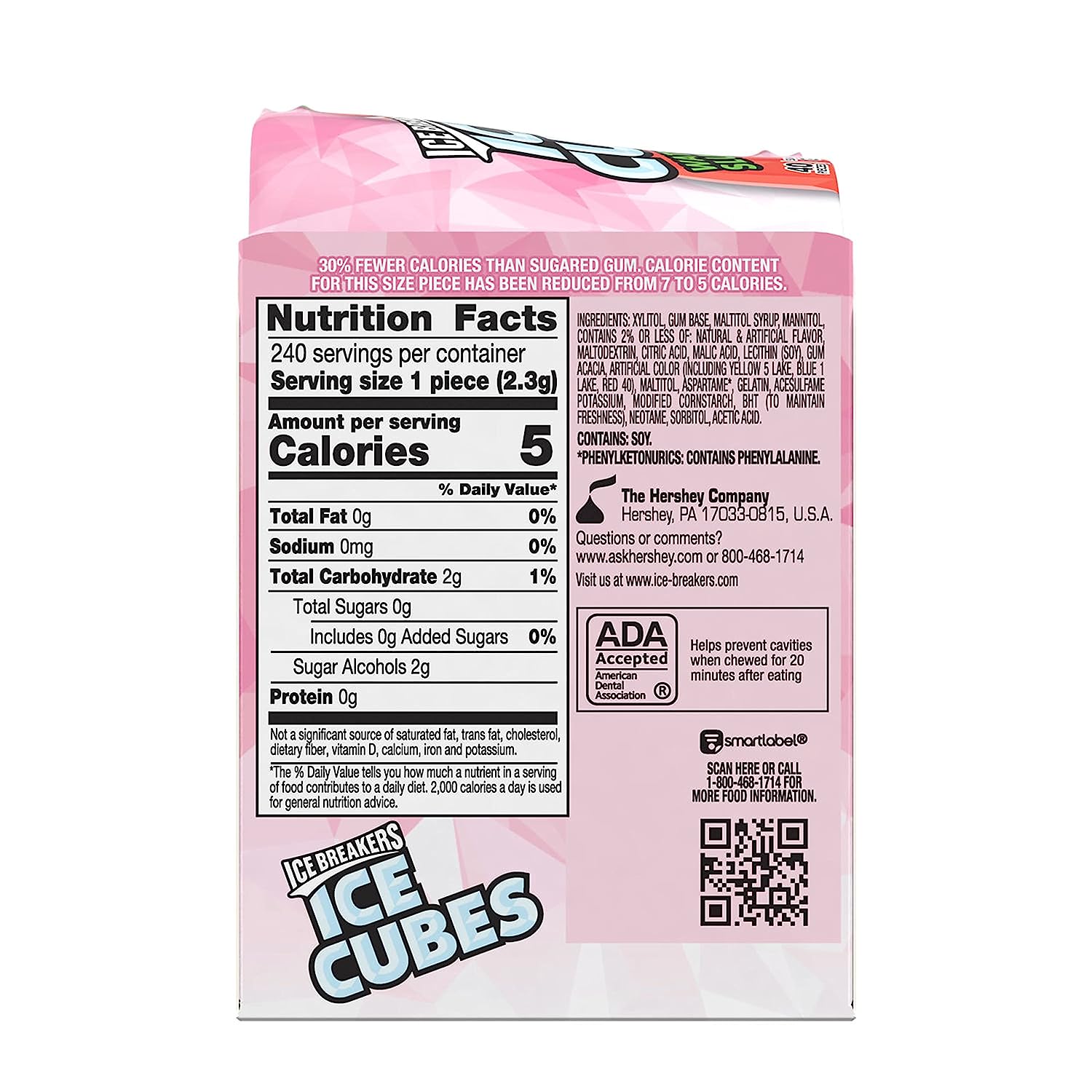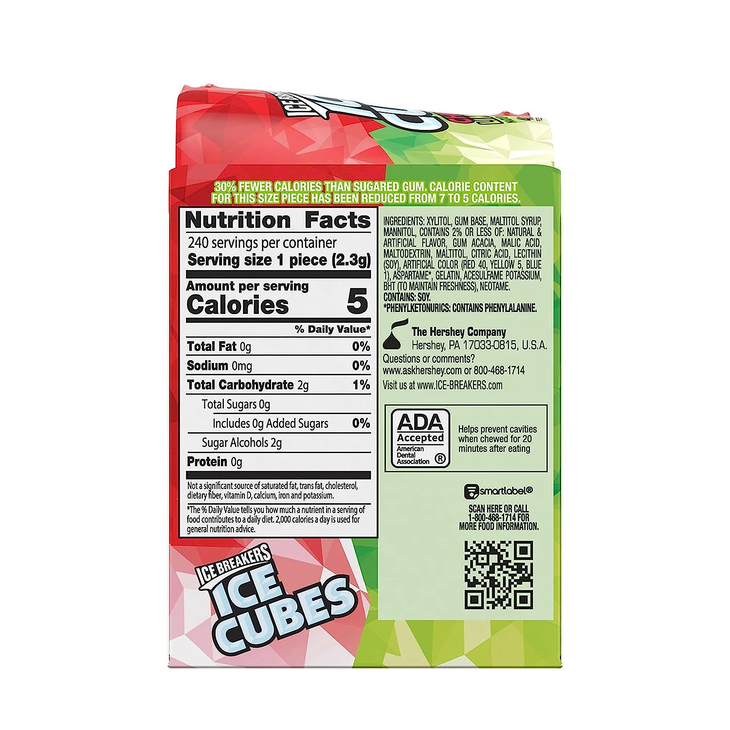 ICE BREAKERS ICE CUBES peppermint chewing gum is bursting with refreshing peppermint flavor. These minty gum cubes are the perfect size for popping into your mouth whenever you're ready for cool, invigorating flavor. With these convenient, 40-piece bottles of ICE BREAKERS ICE CUBES chewing gum, you can have a burst of peppermint, sugar free gum by your side. Keep a gum bottle with you in the car, at home and at the office for quick, delicious satisfaction. These ICE BREAKERS ICE CUBES gum pieces will keep your breath minty fresh during meetings, after lunch, throughout movie nights and in the car. With four full bottles, it's easy to share this bulk chewing gum. Display these vibrant, mint chewing gum cubes near the candy dish at home and work. They're sure to thank you for the long-lasting, peppermint gum treat. Not only does this pack of sugarless gum have 30% fewer calories than sugared gum options, but this xylitol gum also carries the American Dental Association's Seal of Acceptance. With its convenient packaging, ICE BREAKERS ICE CUBES chewing gum packs can travel with you. These four packs are great if you are looking for bulk gum.