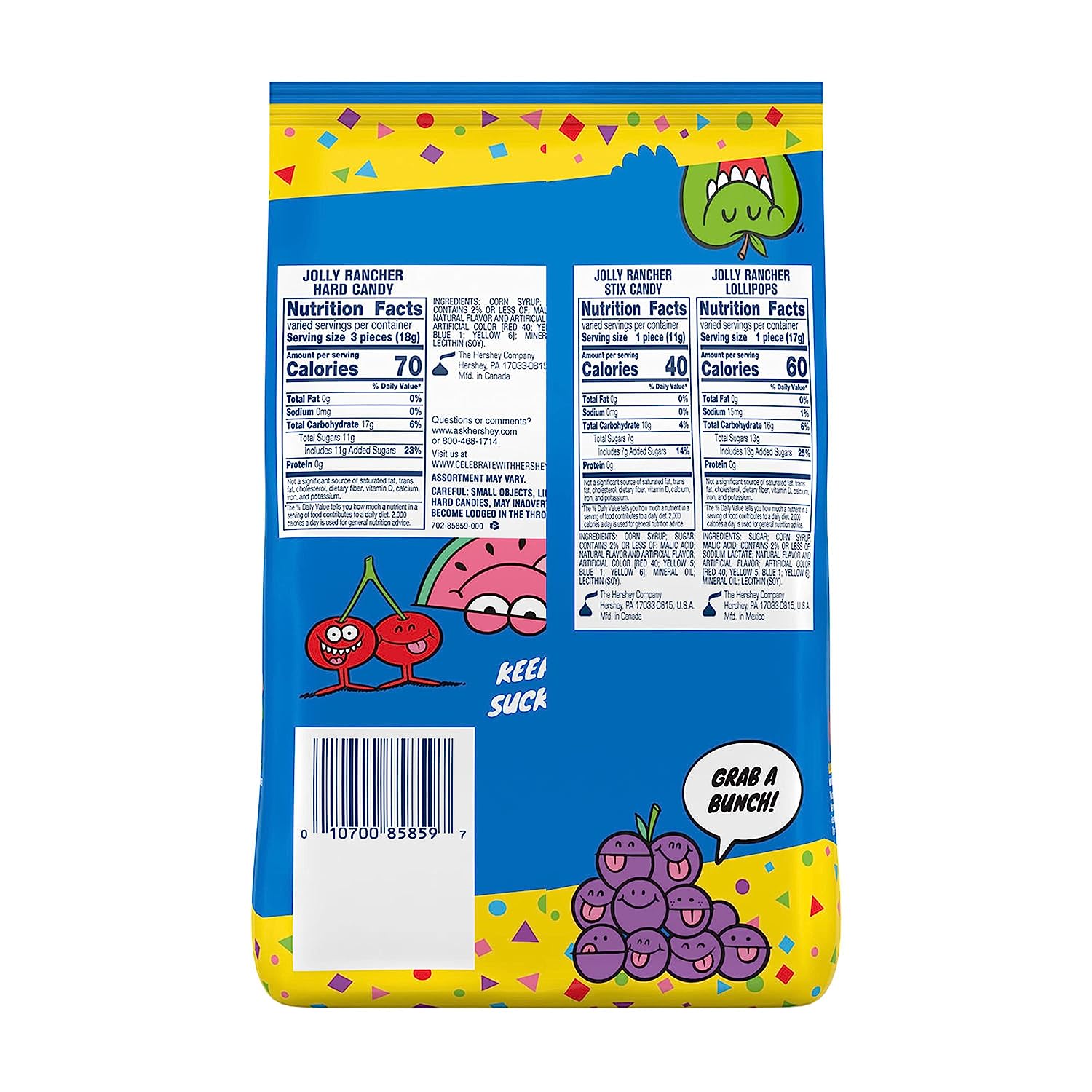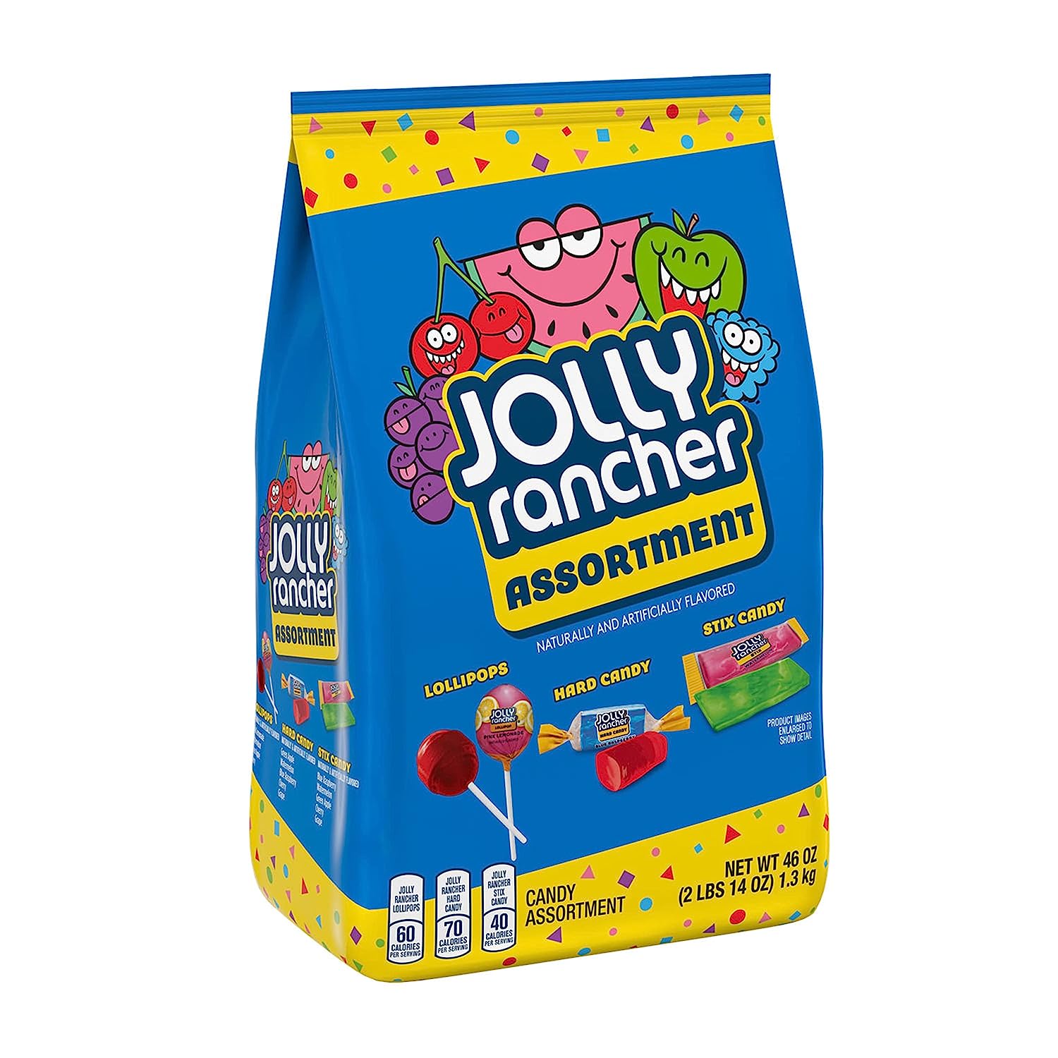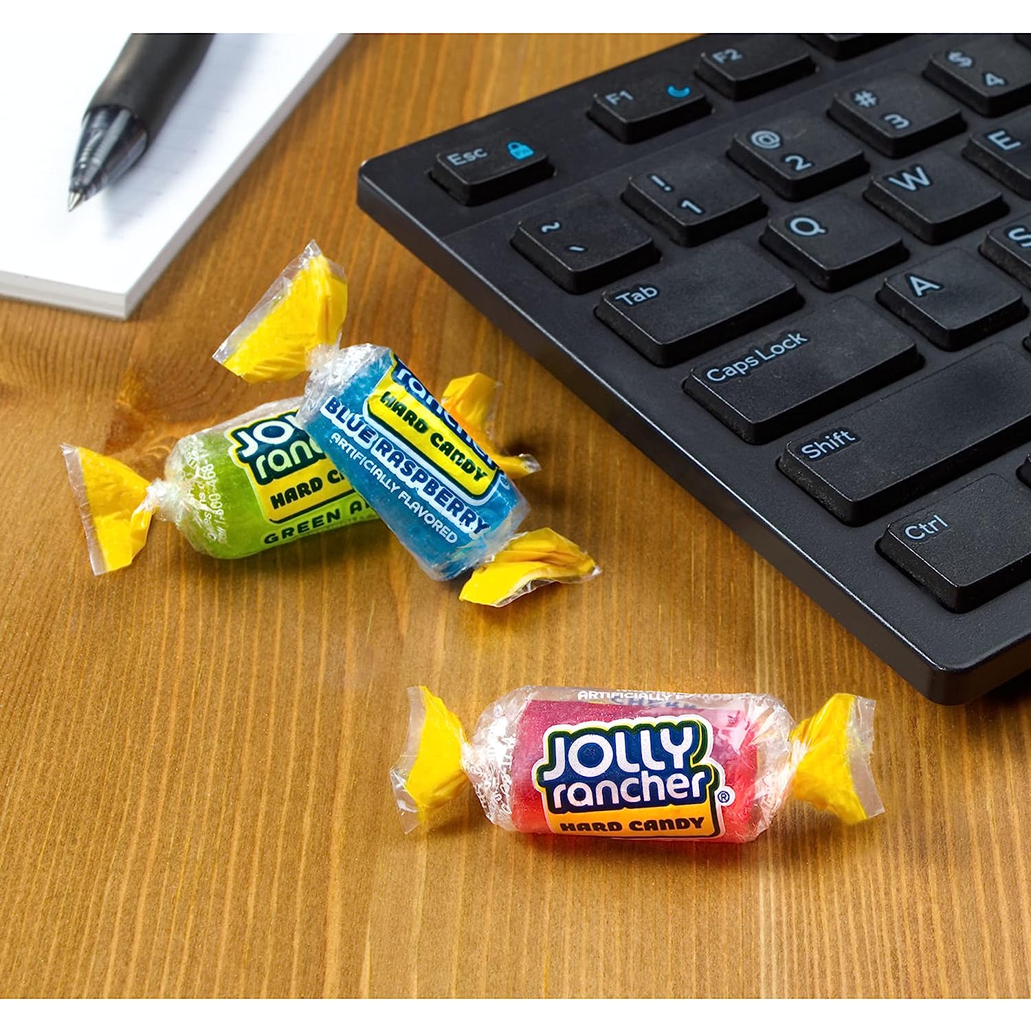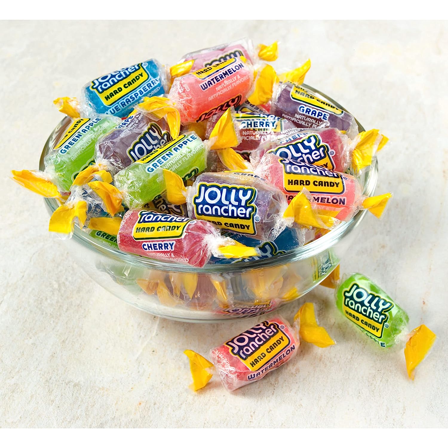 A mix of five fruity favorites for the whole family in just one bag of hard candy? You wouldn't have thought it possible if you didn't know JOLLY RANCHER candy. This 360-piece bag of individually wrapped fruit-flavored hard candy will keep each delicious piece fresh until it's time to open a new bag. Featuring blue raspberry, green apple, cherry, grape and watermelon flavors, JOLLY RANCHER original hard candy offers a combination of the undisputed classics you already know and love. Keep this convenient bulk bag with you on the go so that you can share with friends, co-workers and family members throughout the day — but don't forget to save some for yourself during all of that sharing! These fruit candies make the perfect candy bowl display all year thanks to vibrant colors and attractive JOLLY RANCHER wrappers. They're also great treats for stuffing holiday stockings, filling Easter baskets, creating Valentine's Day party favors and gift bags and filling Halloween trick-or-treat bags and candy bowls. If you want a small candy with a big taste to keep your taste buds busy during movie nights, lunch breaks and snack breaks, JOLLY RANCHER hard candy is the perfect sweet treat for you.
