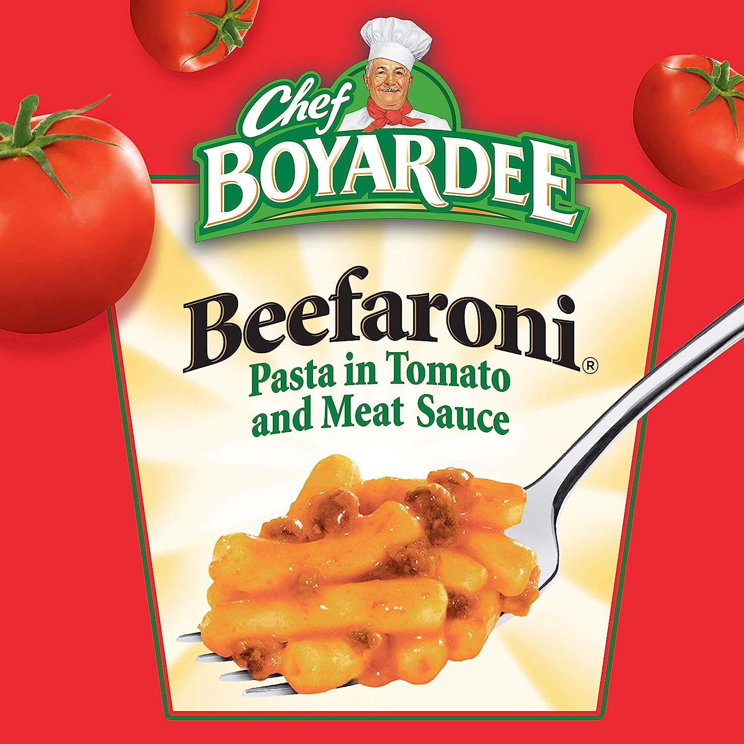 • You'll love the taste of real beef, enriched pasta, and rich tomato sauce in Chef Boyardee Beefaroni