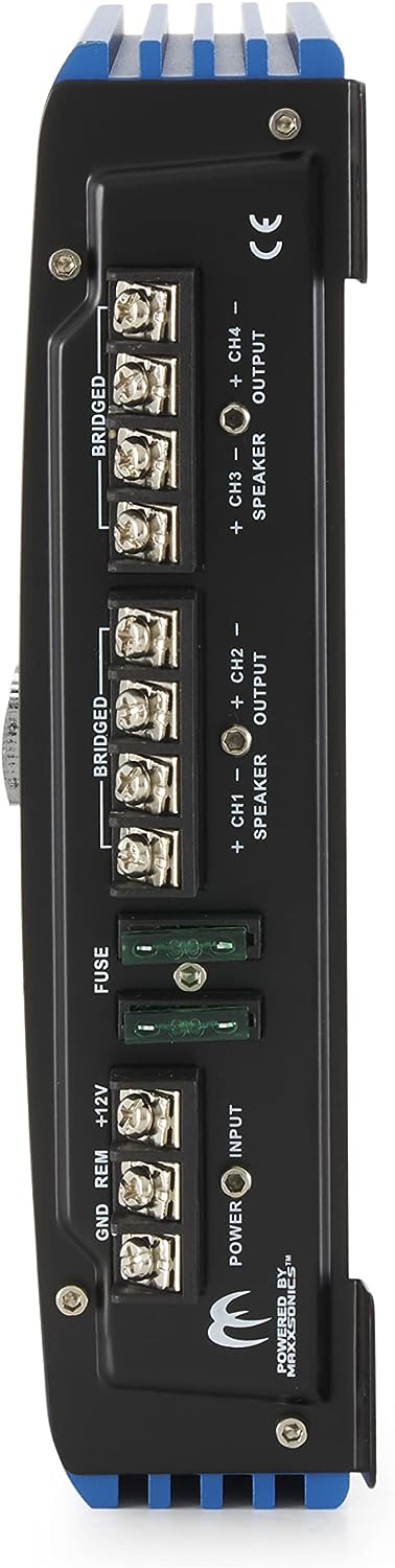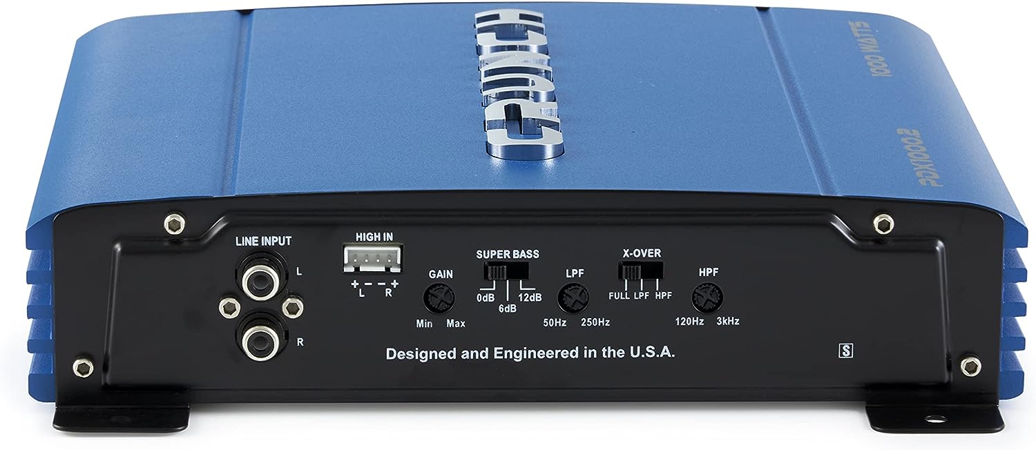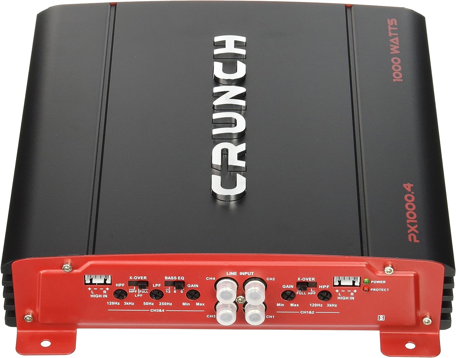 Get more performance out of your entire car audio system by choosing the right amp, the Crunch 1000 Watt 4 Channel PowerDriveX Series Class AB Car Amplifier. This exclusive model comes in stunning blue. Unparalleled in quality, the Crunch 1000 Watt 4 Channel PowerDriveX Series is a low noise pre amplifier with low level RCA inputs and outputs. It features flexible installation, allowing the amp to run in 4 channel or bridged mono mode. With rugged MOSFET pulse width modulation power supply, fully adjustable crossovers, and bass boost, this amplifier will always deliver the quality you need. Take your car audio to the next level with the Crunch 1000 Watt 4 Channel PowerDriveX Series Class AB Car Amplifier.