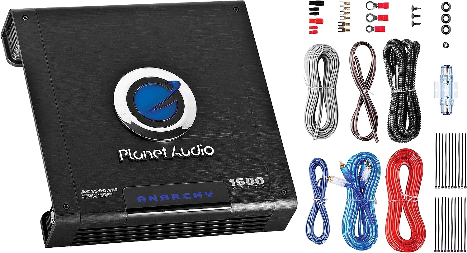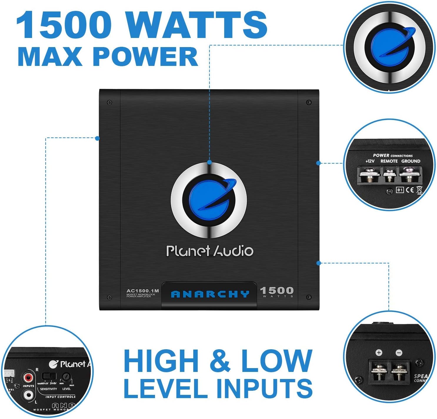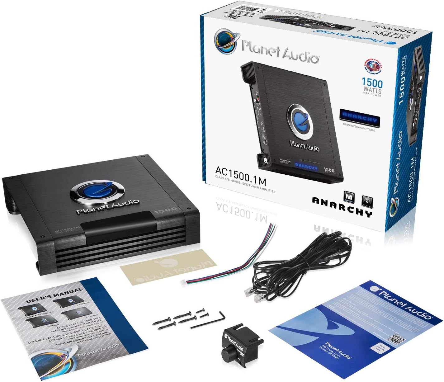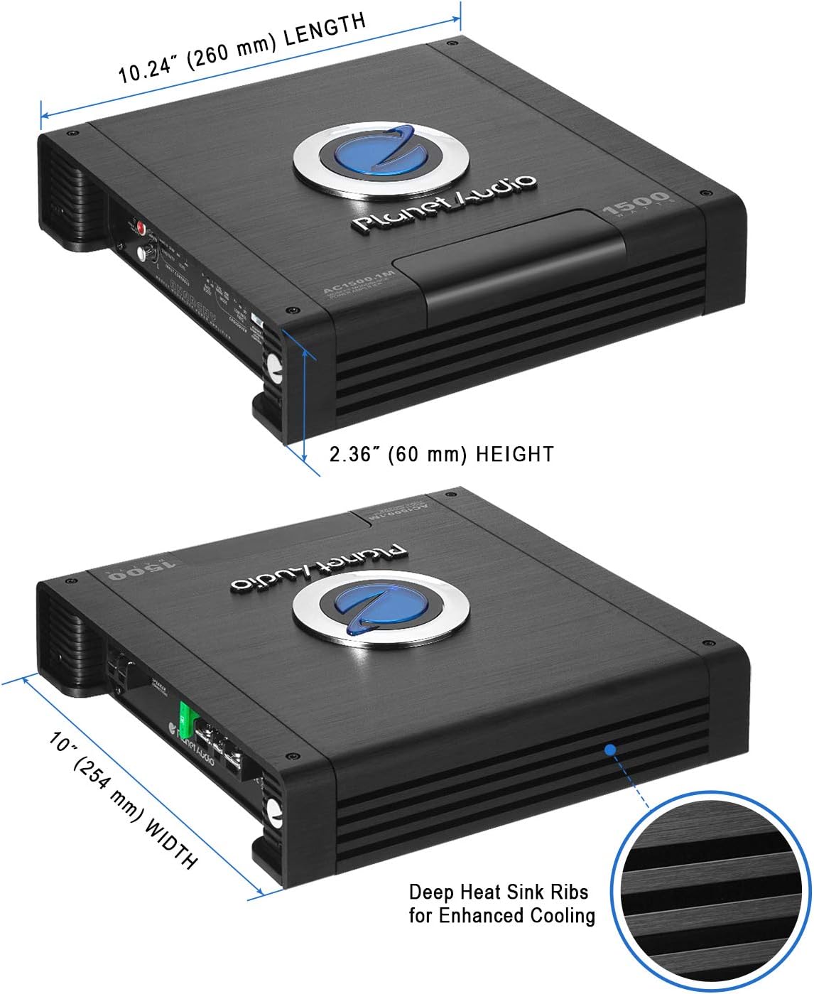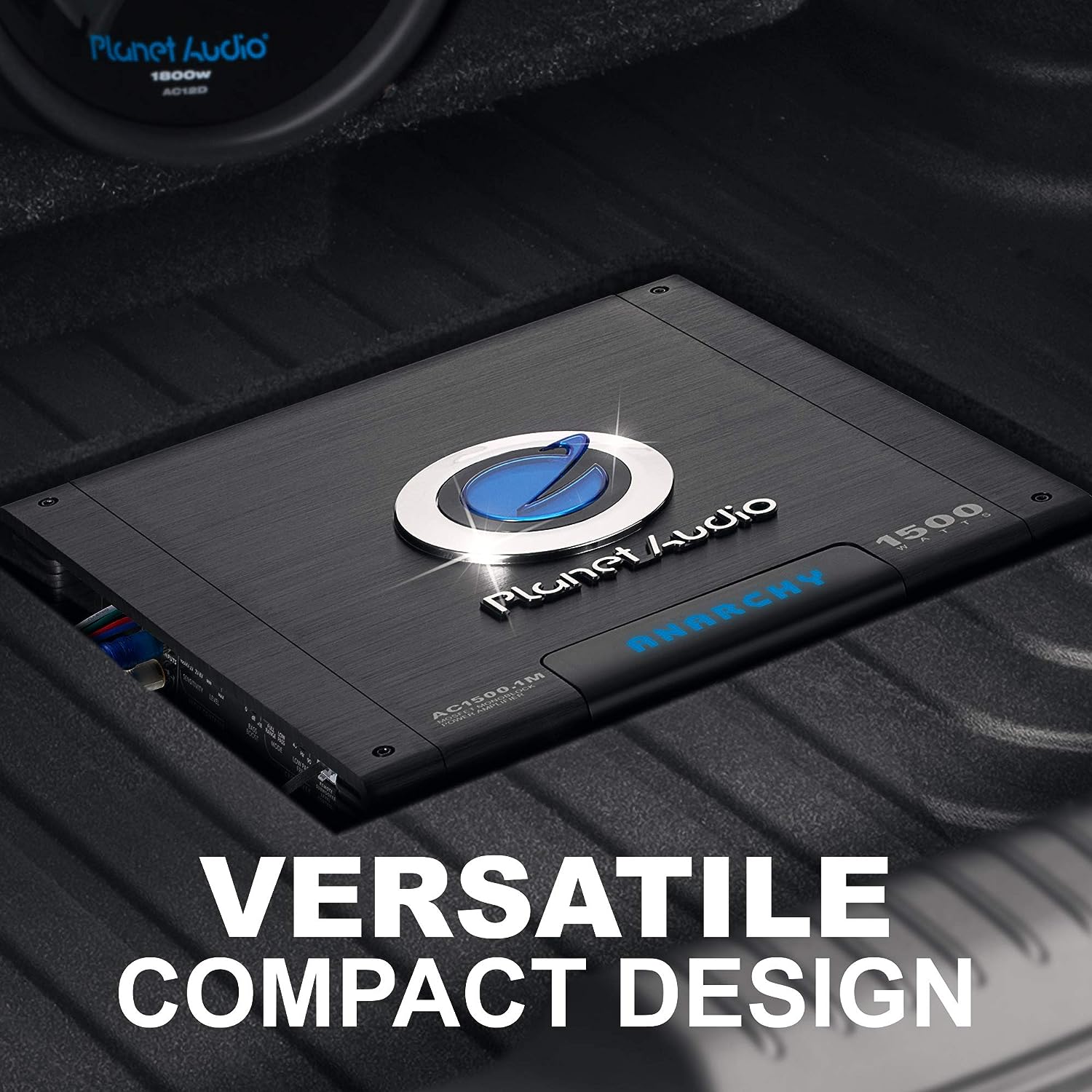 Planet Audio AC1500.1M Monoblock Car Amplifier - 1500 Watts Max Power, 2/4 Ohm Stable, Class A/B, Mosfet Power Supply, Remote Subwoofer Control