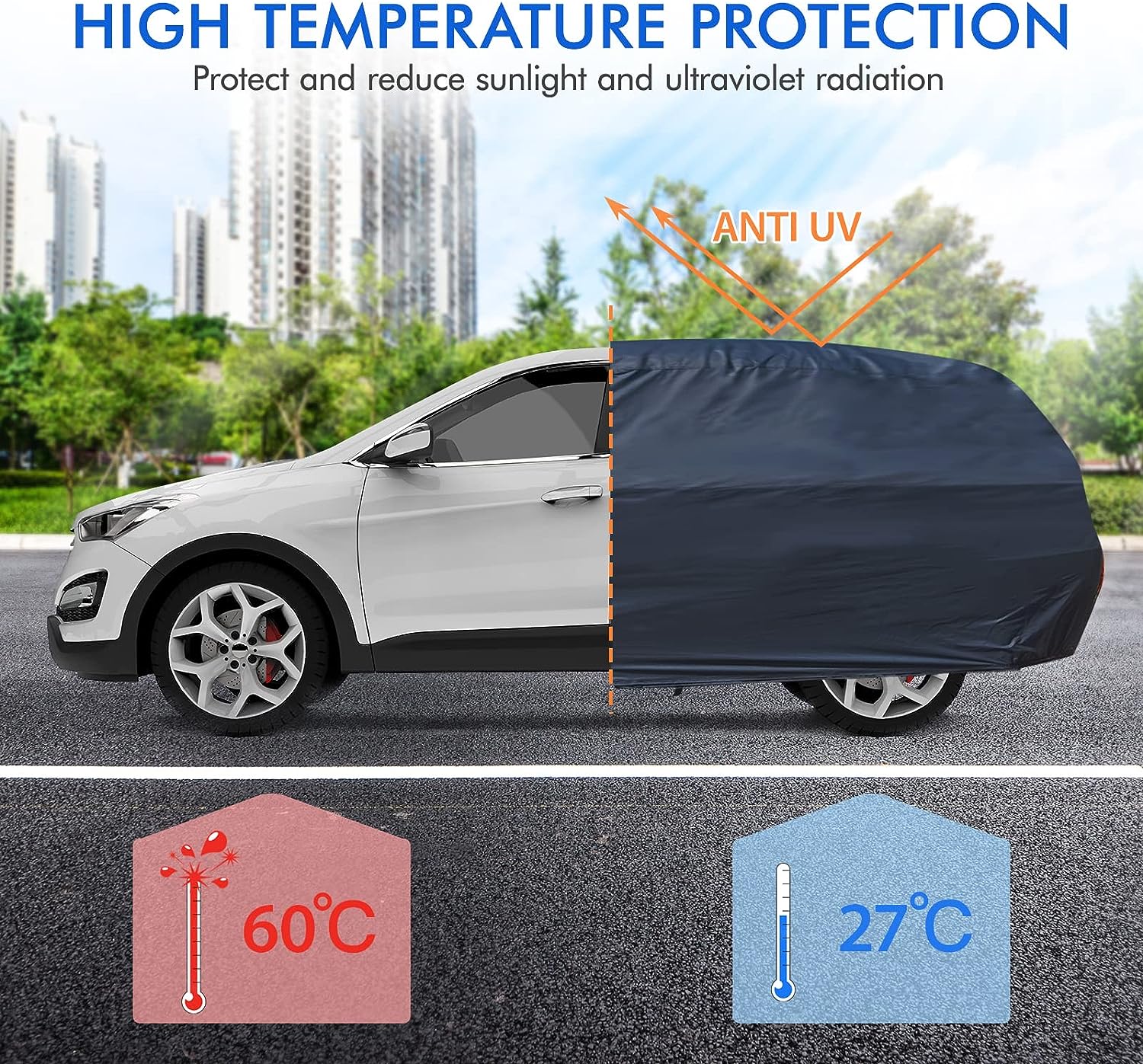 • 🚗【Considerate Service】We are proud of our products. On the basis of conventional design, our car cover has added 1 windproof rope. If you do not know the installation steps or have other questions, please feel free to contact us, and we will serve you as soon as possible