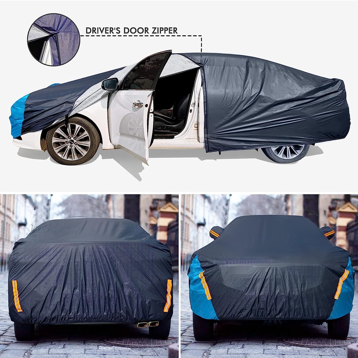 Car Cover Waterproof All Weather for Automobiles, 6 Layers Outdoor Full Exterior Cover Rain Sun UV Snowproof Protection with Zipper Cotton, Mirror Pocket for Sedan (190-195 inch)