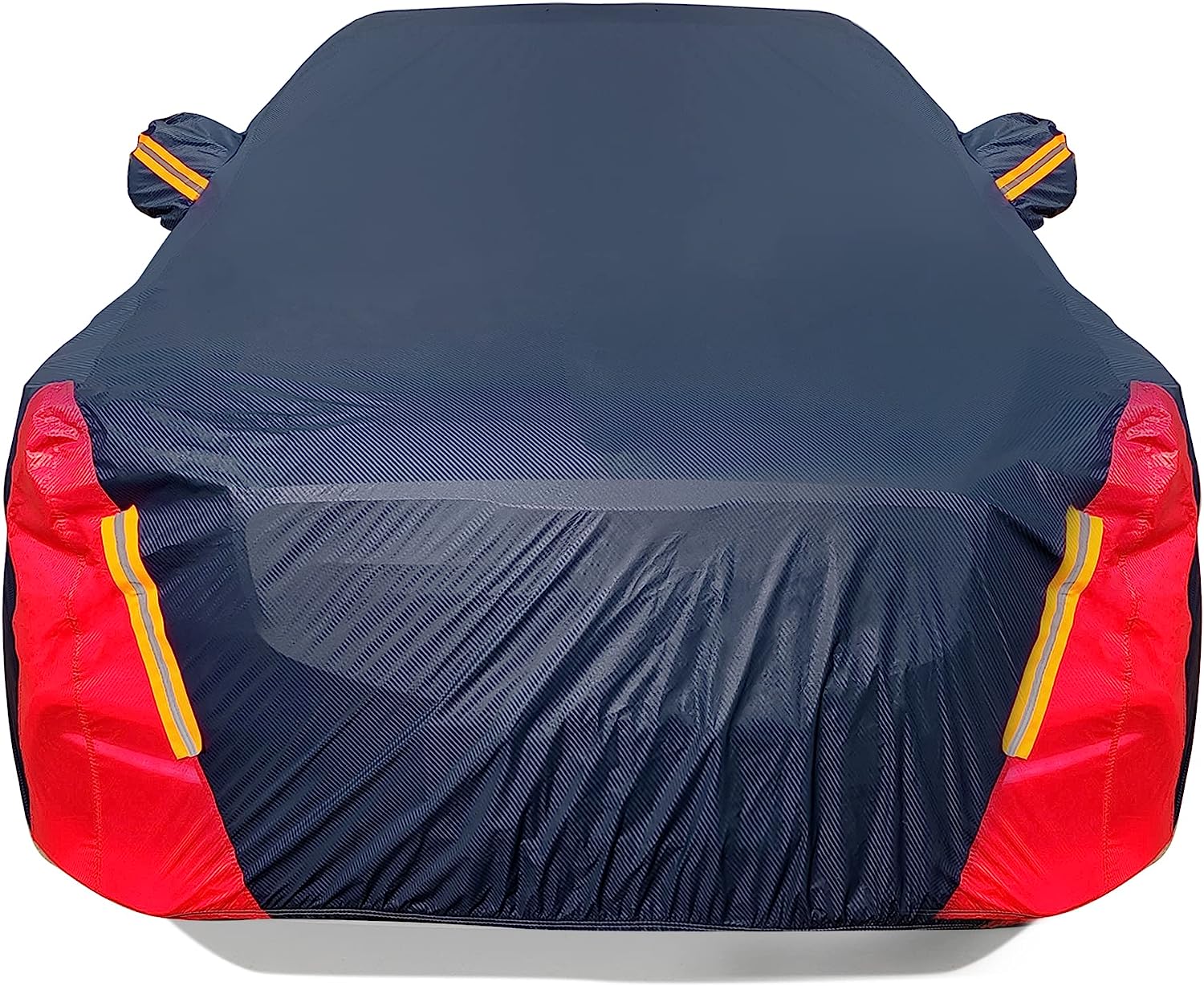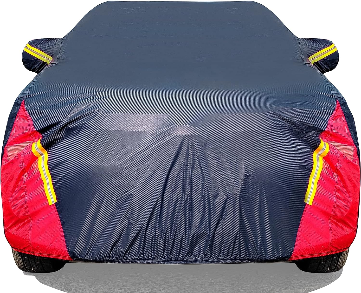 • 🚗 【2 Color Splicing and Fusion】 Compared with our previous ordinary car covers, the car cover waterproof has been upgraded in appearance and color. The main color of navy blue is matched with blue or red stitching embellishment, which makes the whole car cover wrapped in your car more cool