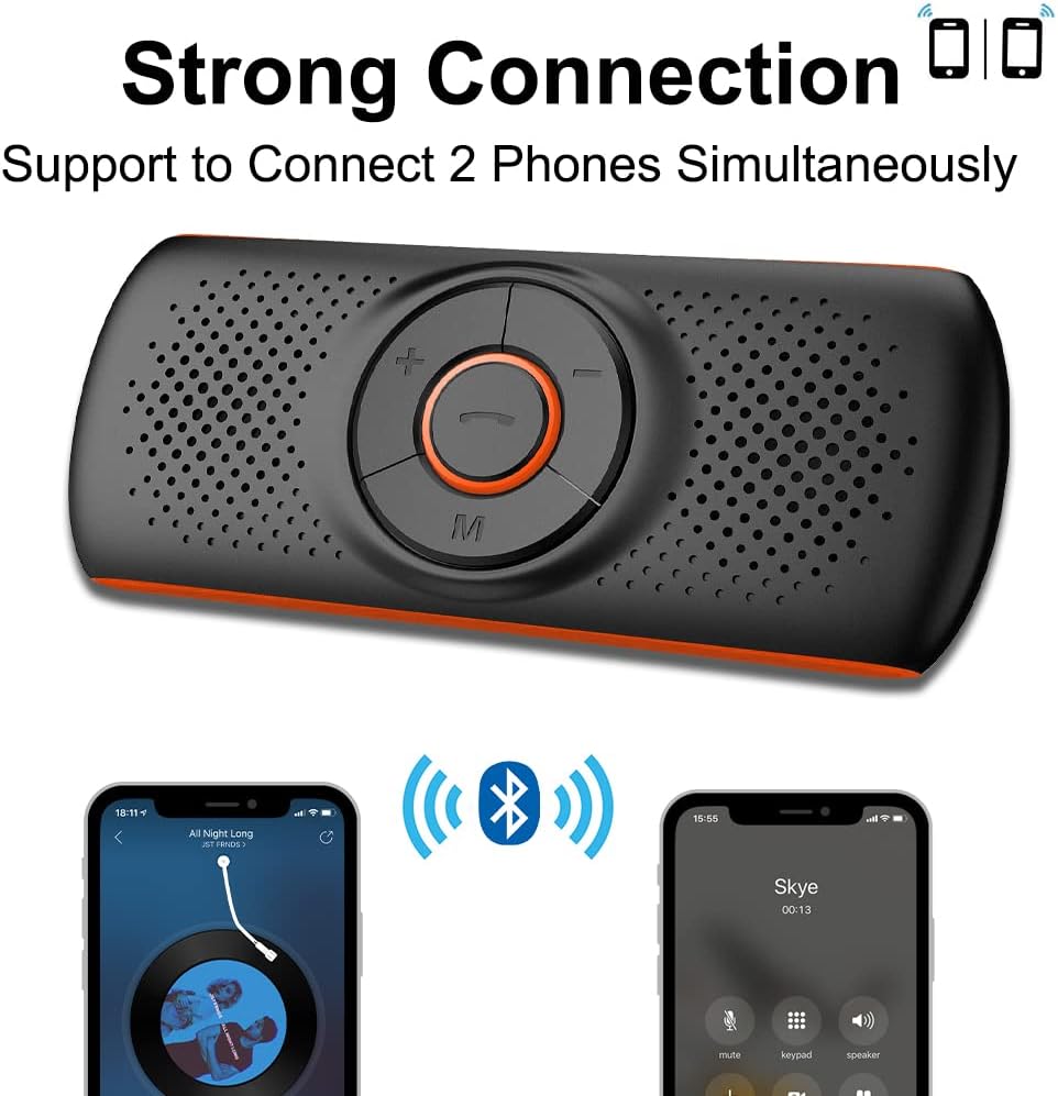 • ★Easy to Use: Just clip it to your car sun visor with the magnetic back clip and connect it with your phone via Bluetooth. Supports connecting to 2 mobile phones.