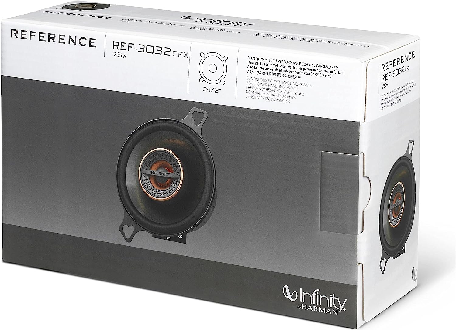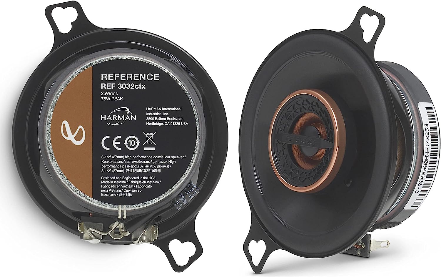 Infinity's 3-1/2-inch 3032cf is a two-way loudspeaker with Plus One woofer cone and balanced dome tweeter. With proprietary features such as patent-pending Plus One cones and true 4-ohm topology, this speaker makes an ideal upgrade to your factory drivers.