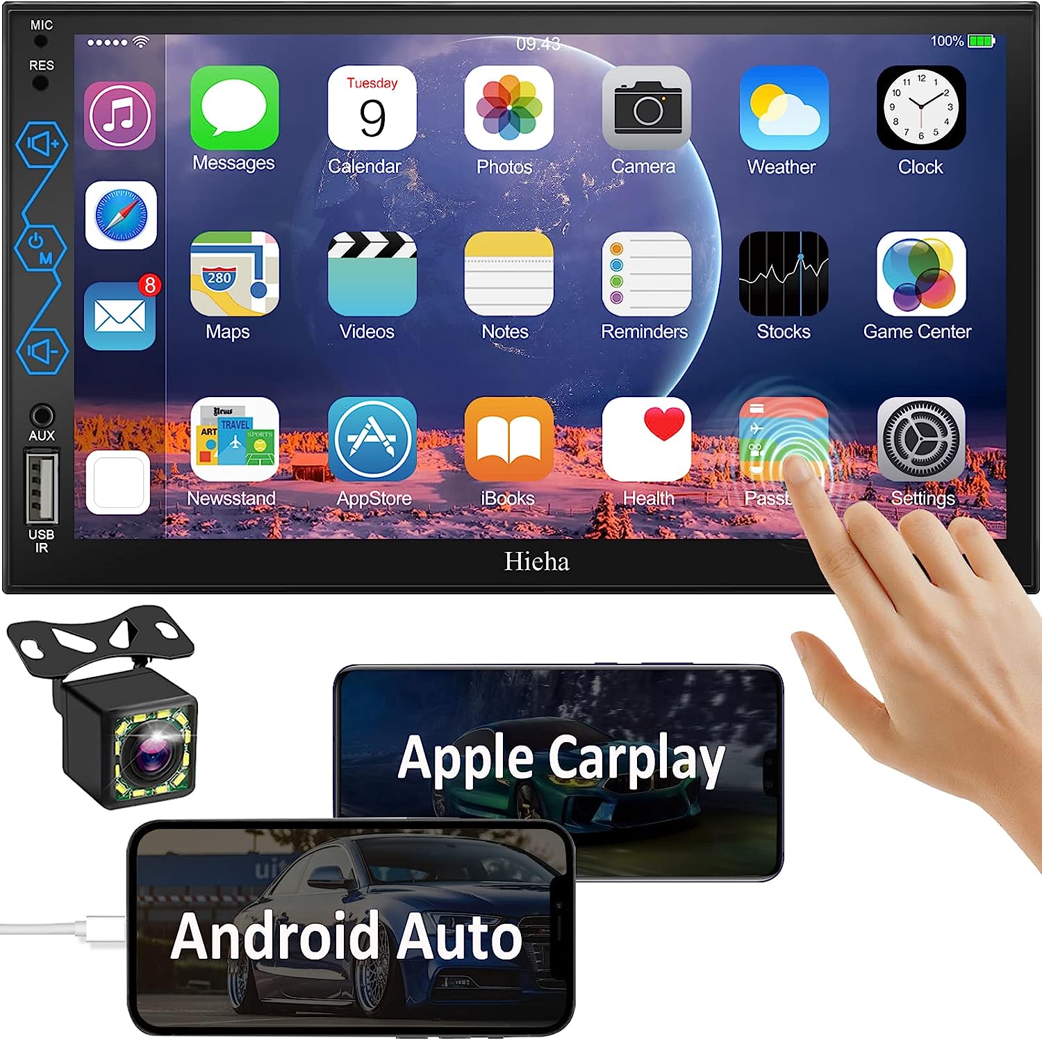 Car Stereo Double Din Radio with Backup Camera -Voice Control Apple Carplay & Android Auto, Bluetooth 5.3 Touch Screen Subwoofer Car Audio Receivers, 7 Inch HD MP5 Player with Mirror Link, USB/SD/A/FM