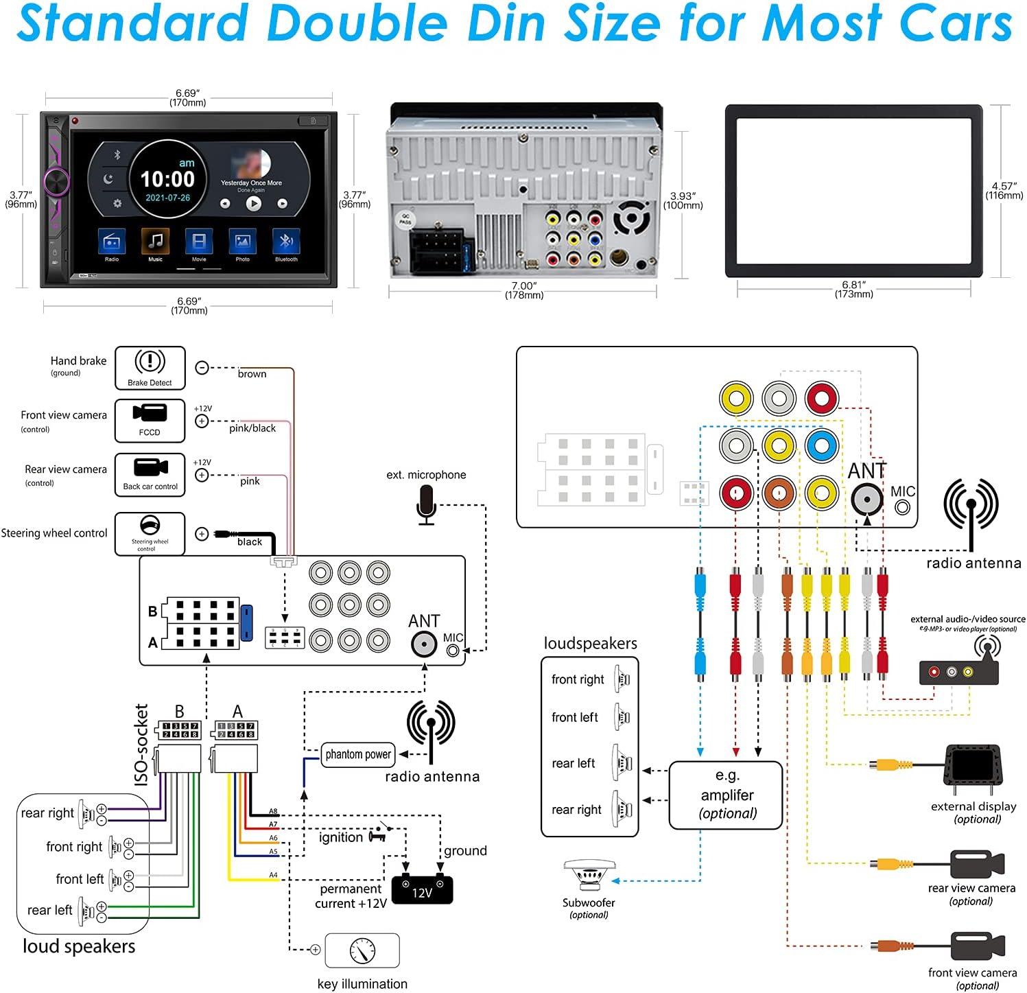 • Bluetooth Handsfree & Dual Mic: Bluetooth5.0 technology lets you make wireless hands-free calling and listen to streaming music service such as Spotify and Pandora and control the track & volume up/down and play/pause through the system. This headunit is designed with a built-in mic and external mic jack for clearer voice.