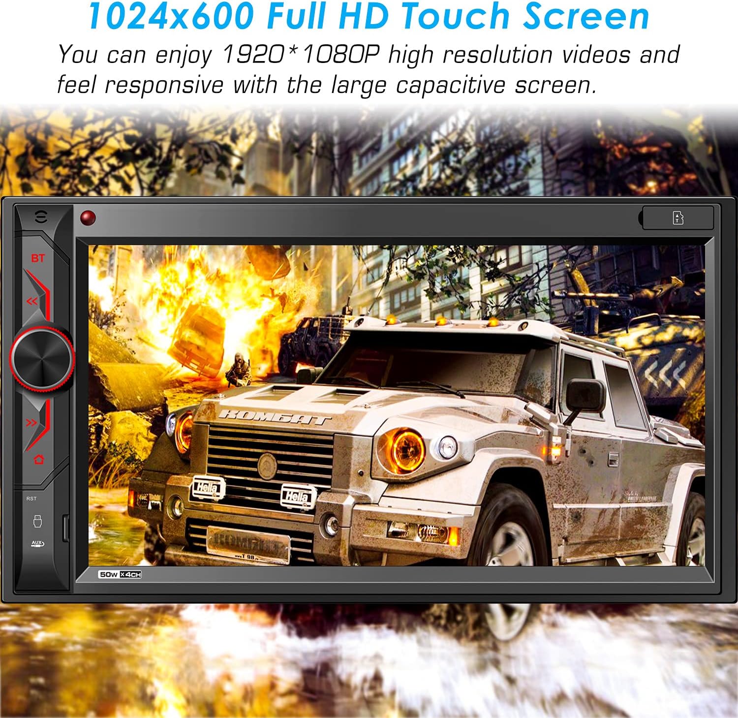 • 7" HD Display Capacitive Screen: The bluetooth car audio applies wide-viewing angle HD display touchscreen with 1024*600 resolution, you can enjoy more responsive and clearer viewing experience than traditional display screen when playback 1920 x 1080P video.