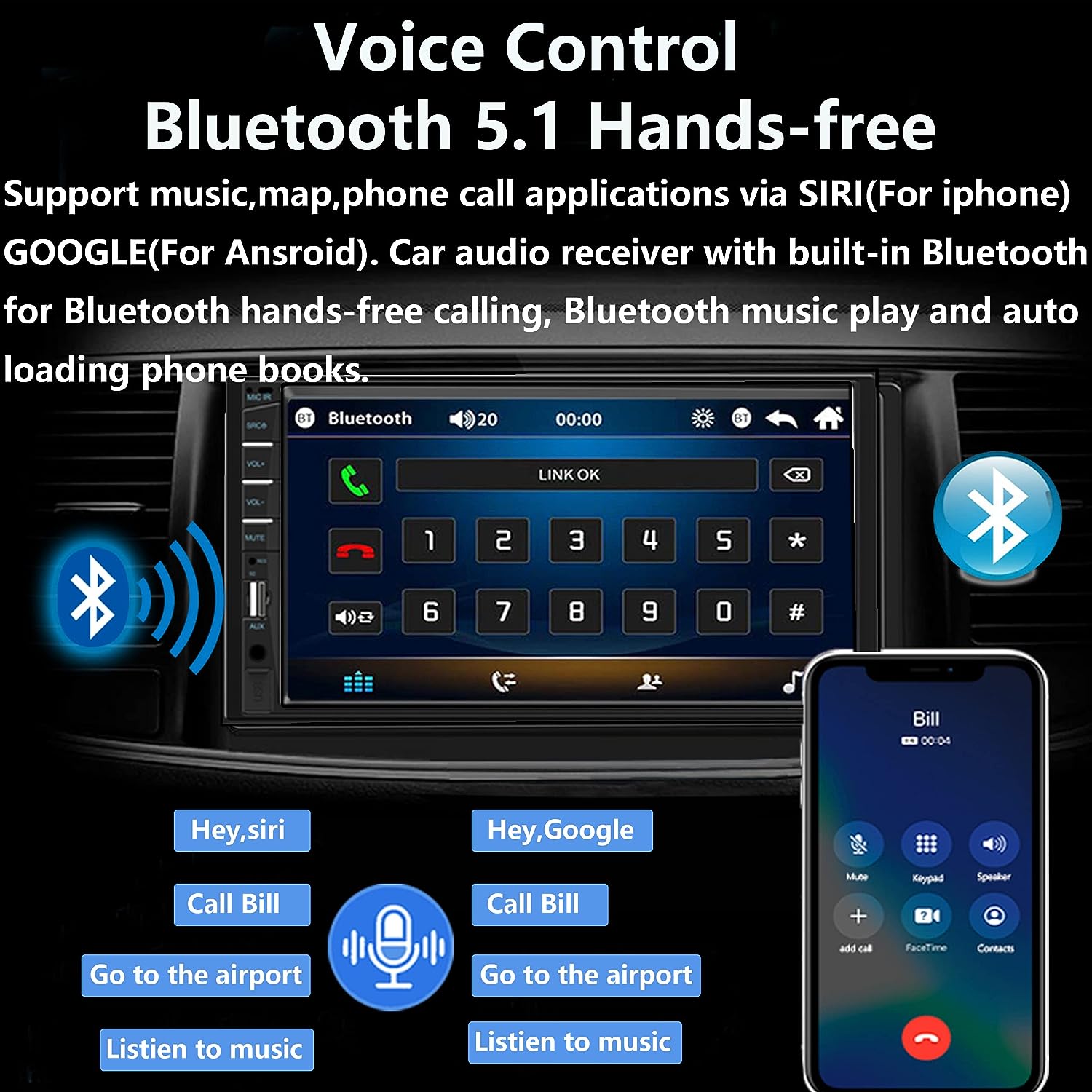 • 【Upgraded Bluetooth 5.1 Version】:This in dash car radio with bluetooth Provide a more stable connection for your smartphone and Bluetooth devices, it can capture your voice clearer and enhance your phone call experience, allows you to enjoy a superior music listening experience!