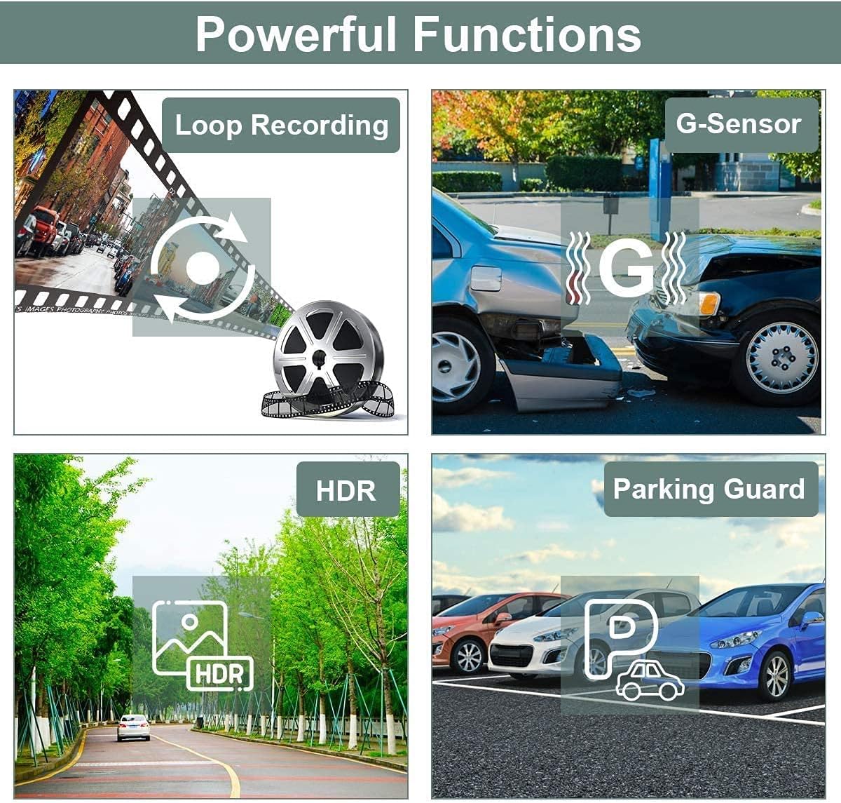 • 🚕【Plug and Play Car Dashboard Cam】- This camera for car is straightforward to install and operate. The included dash cam front suction mount can be easily attached anywhere on your windshield in seconds.Just insert the SD card (🫰package included) and connect to the power supply.🌴The car security camera will start record immediately after igniting. Also you can playback videos of each clear detail on the dashcam or PC.💐Note: Mini USB cable just connect the car camera front rear and your PC
