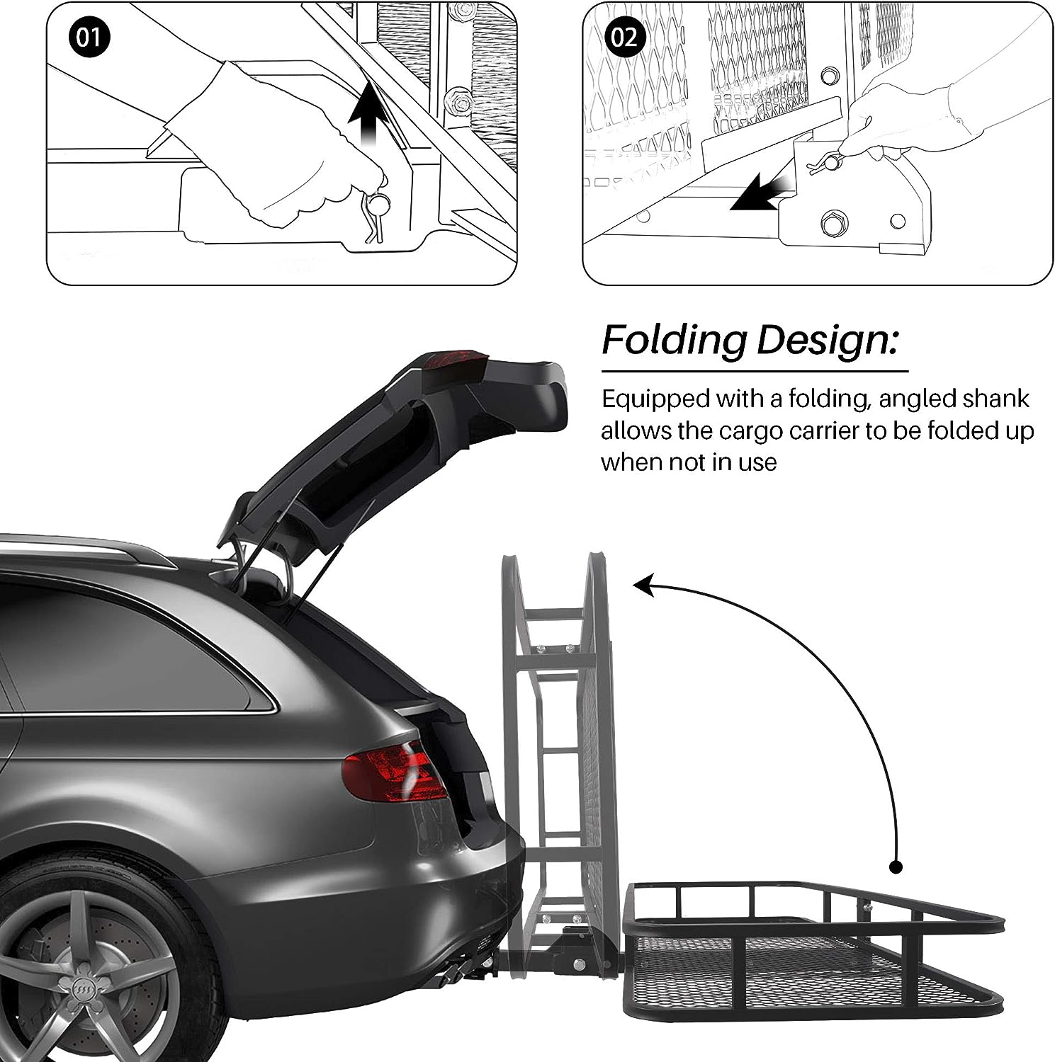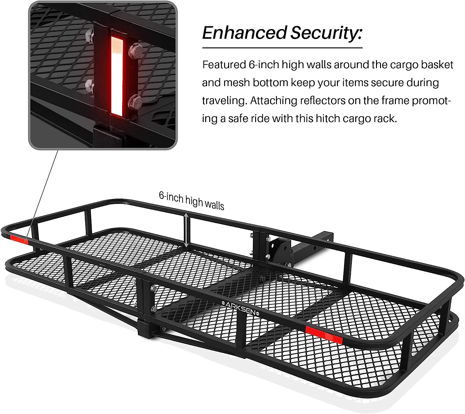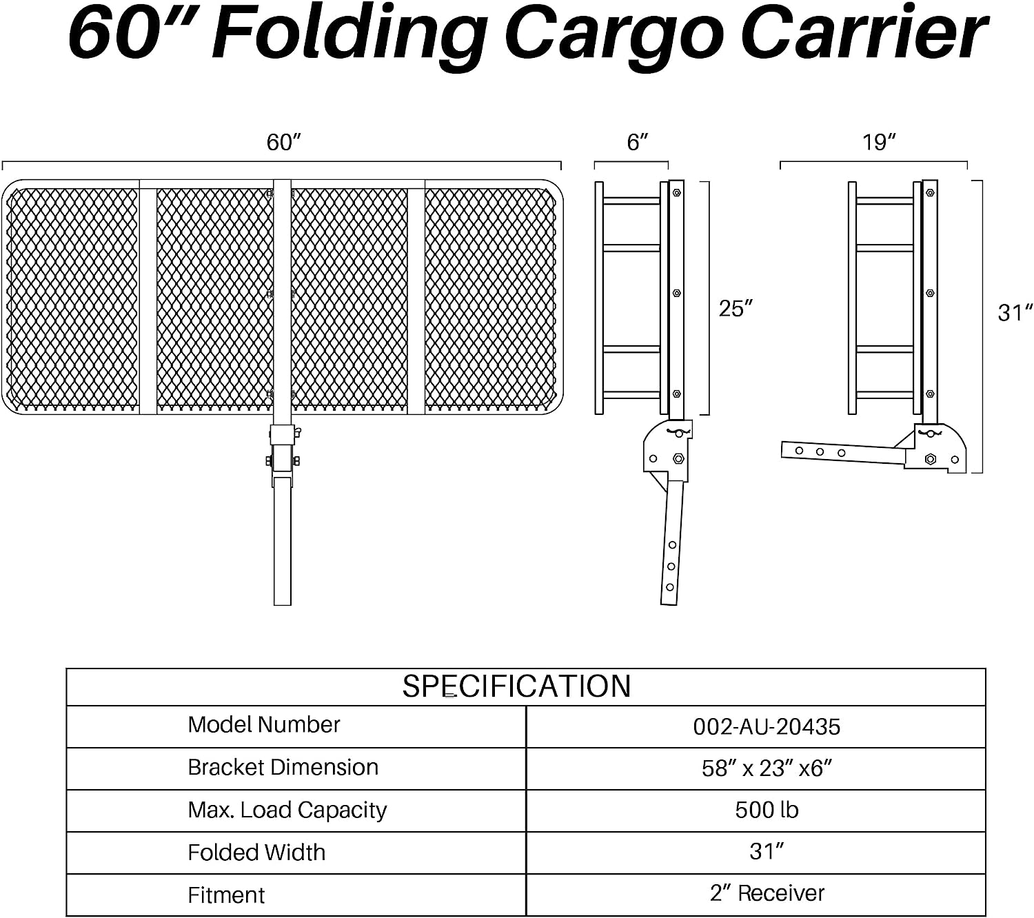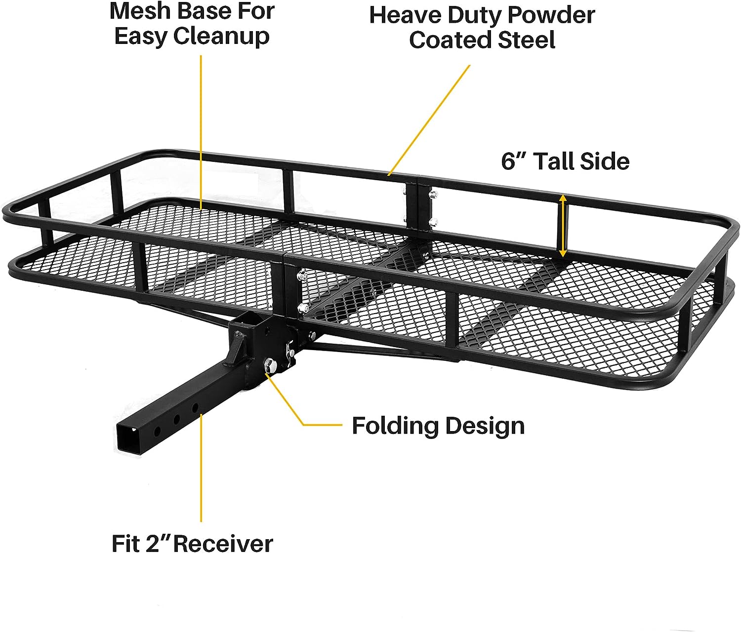 ARKSEN 60 x 25 Inch Folding Cargo Rack Carrier 500 Lbs Heavy Duty Capacity 2 Inch Receiver Luggage Basket Hitch Fold Up for SUV Pickup Camping Traveling