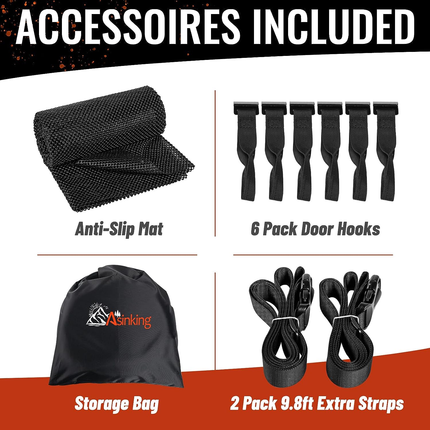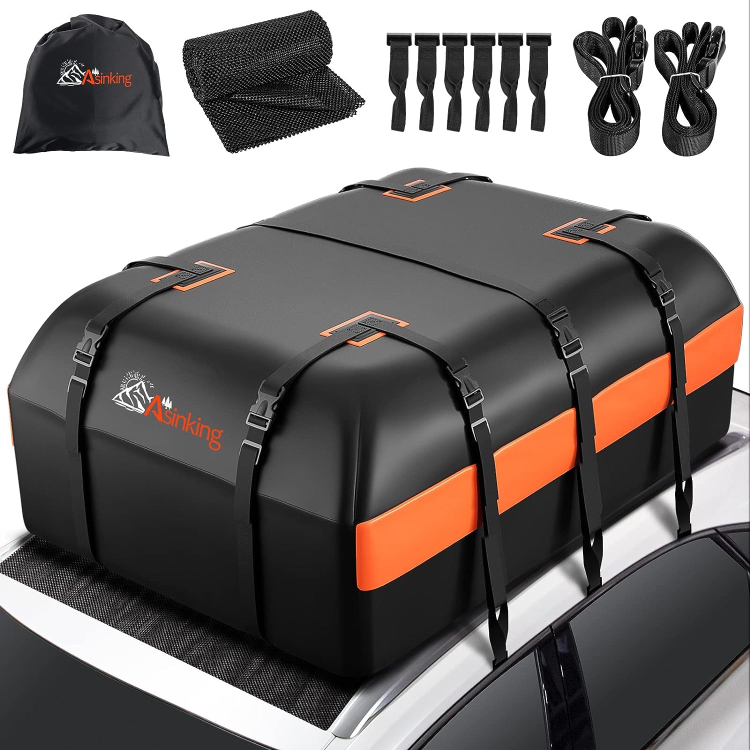 • 【PACKAGE LIST】You will receive 1x roof top carrier bag, 1x storage bag, 1x anti-slip mat, 6x door hooks, 2x extra luggage straps, 1x luggage lock.